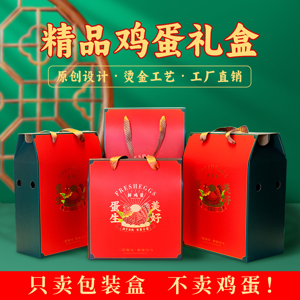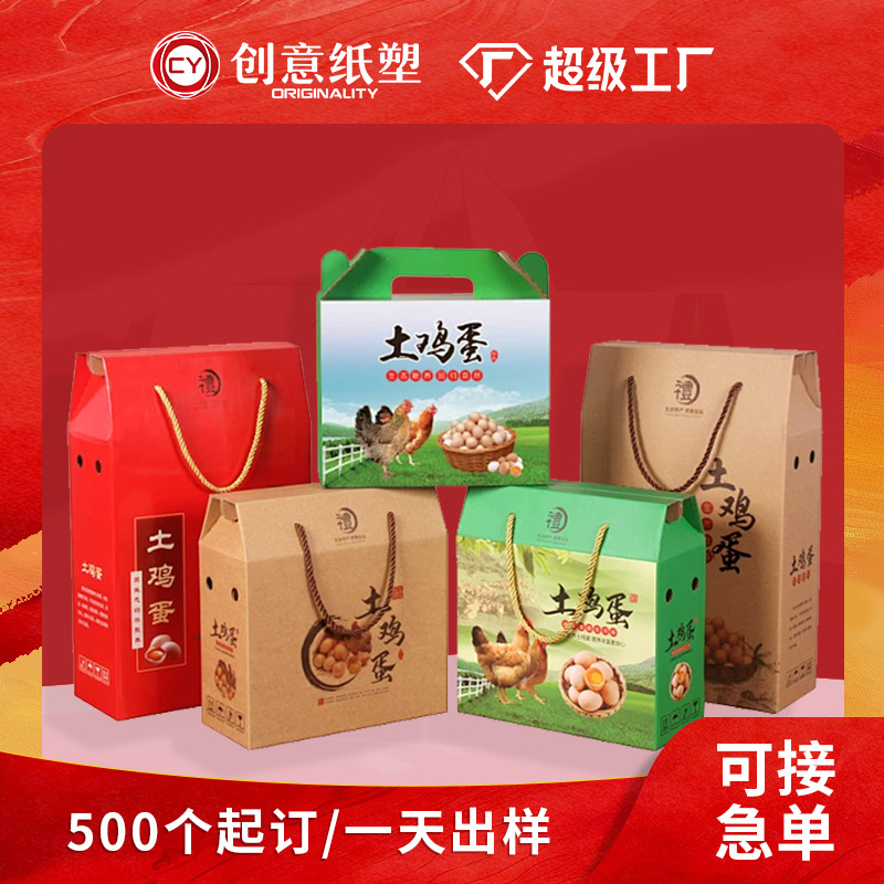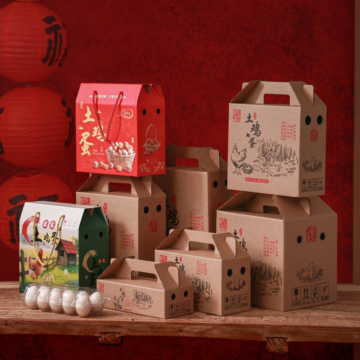 彩印红色土鸡蛋礼盒包装盒鸡蛋礼品盒空盒水墨款田园风纸箱可加印
