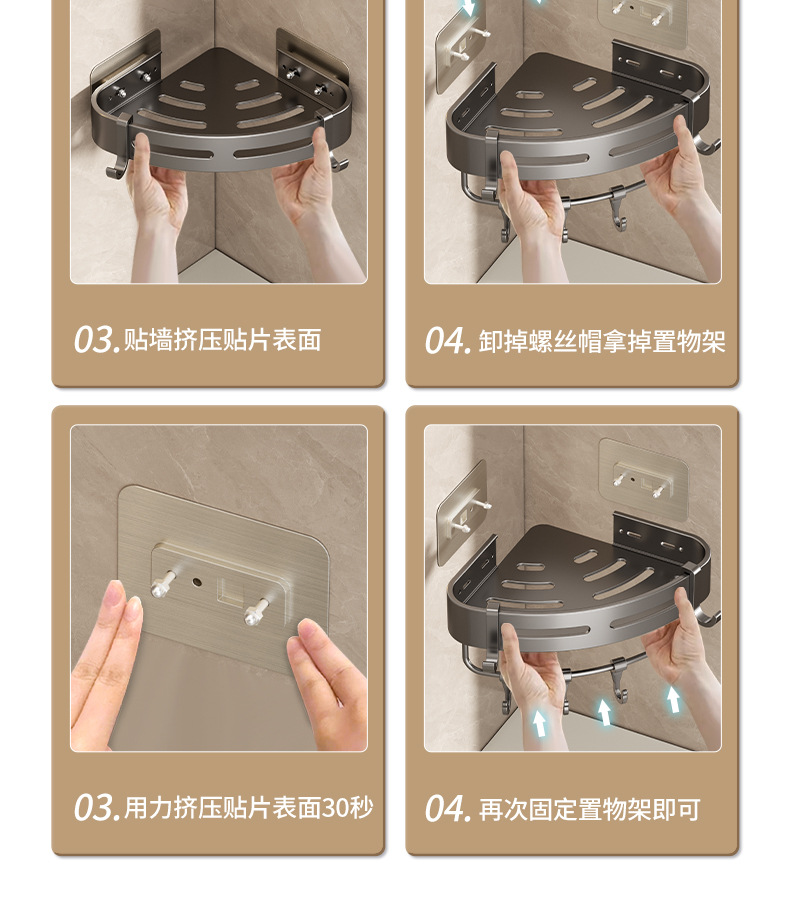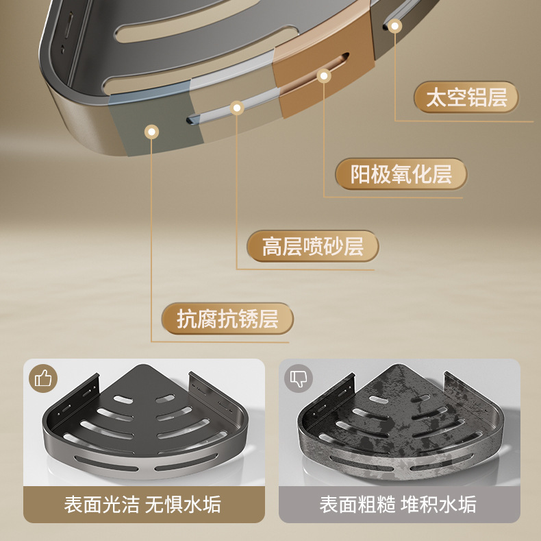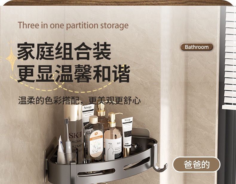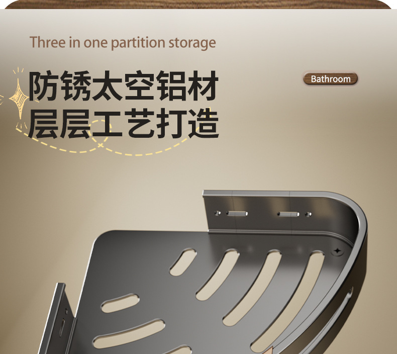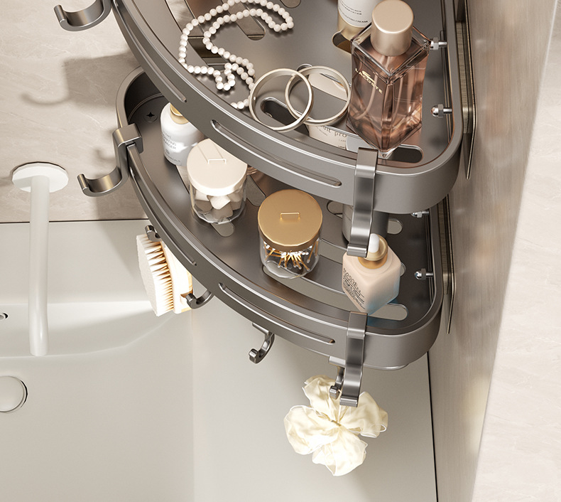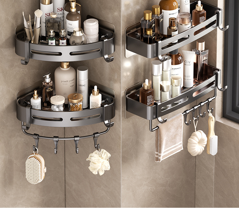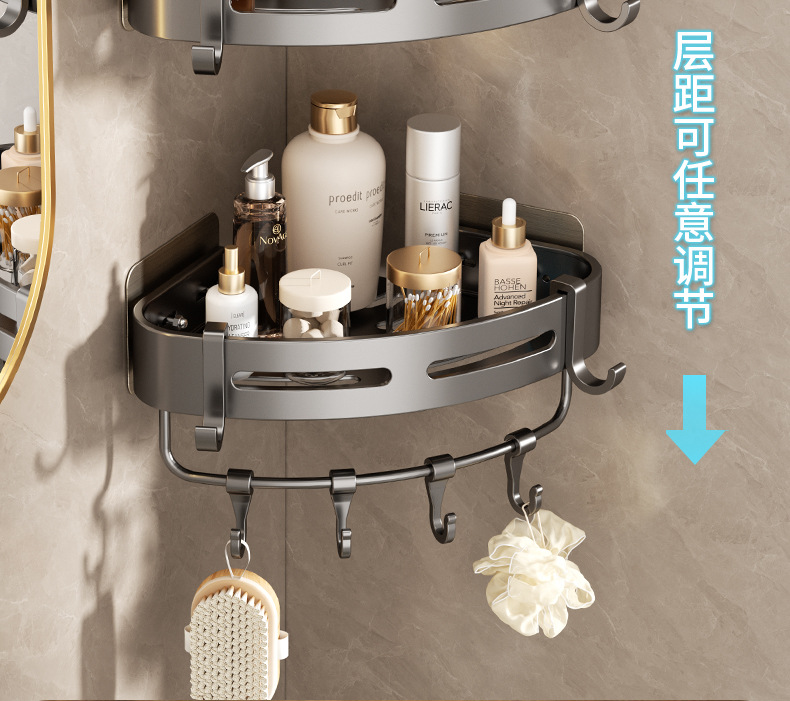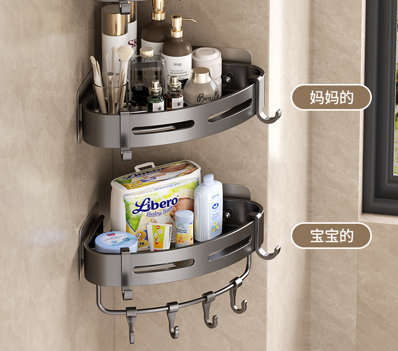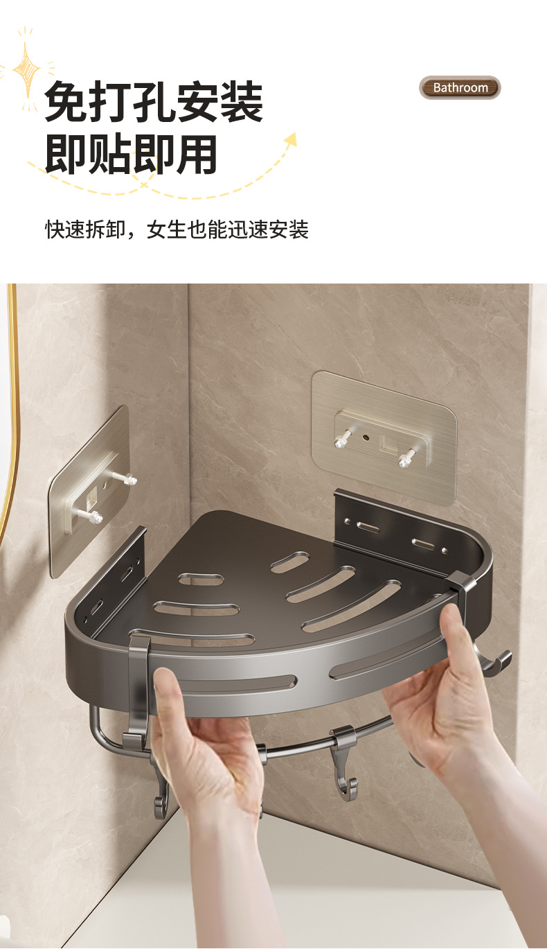 銃灰浴室棚トイレ収納棚壁掛け式穴なしトイレ宇宙アルミ三角コーナー棚
