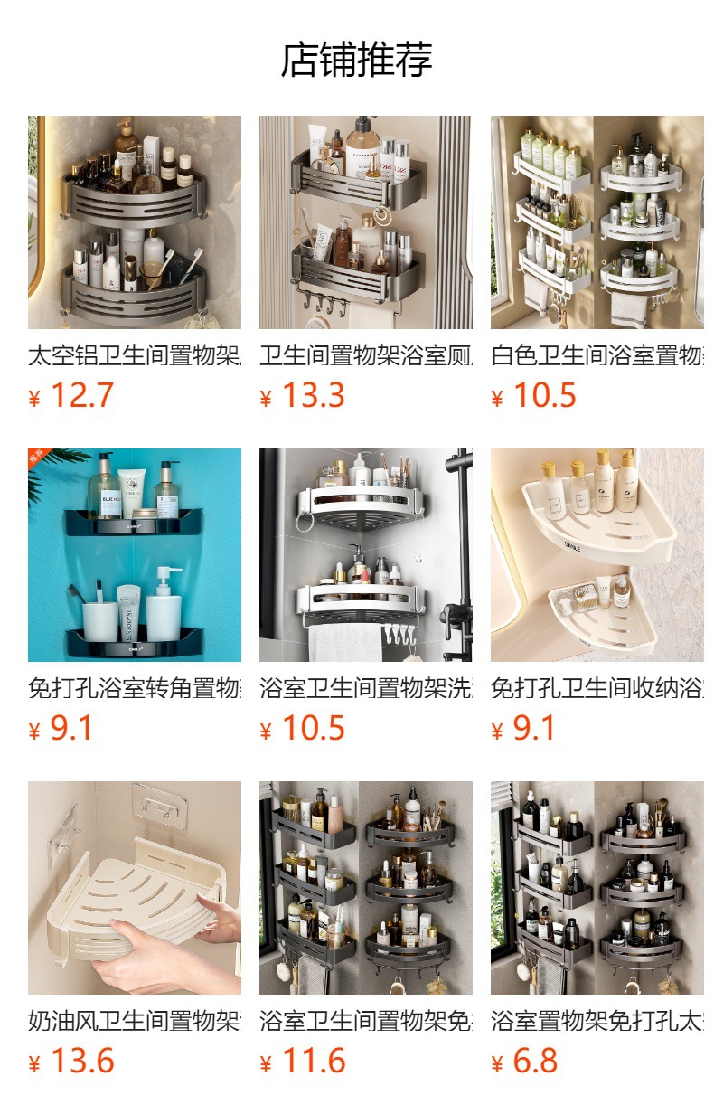 吸盤棚トイレ浴室穴なし壁掛け式トイレ洗面台風呂間三角収納棚