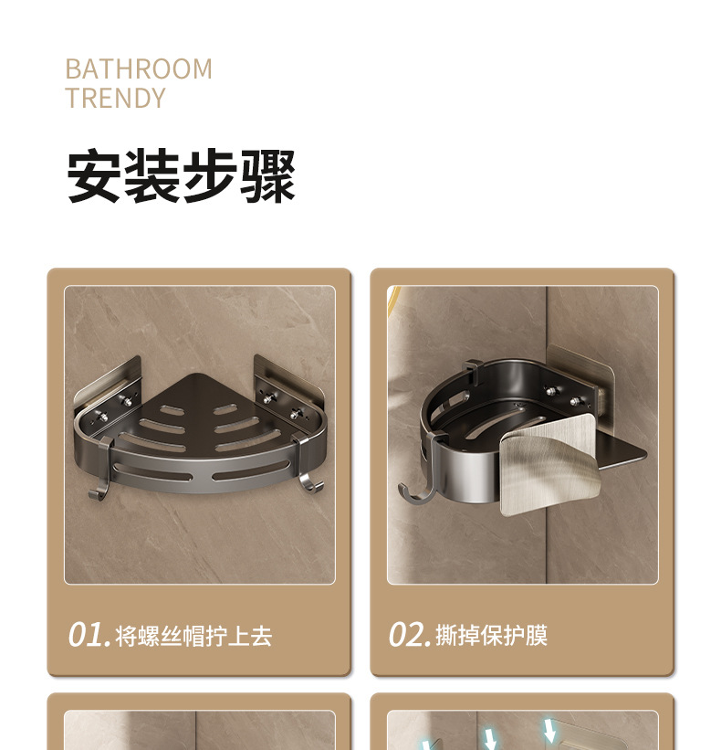 浴室棚トイレ穴なしトイレ洗面台シャワー室壁掛け式収納三角バスケット