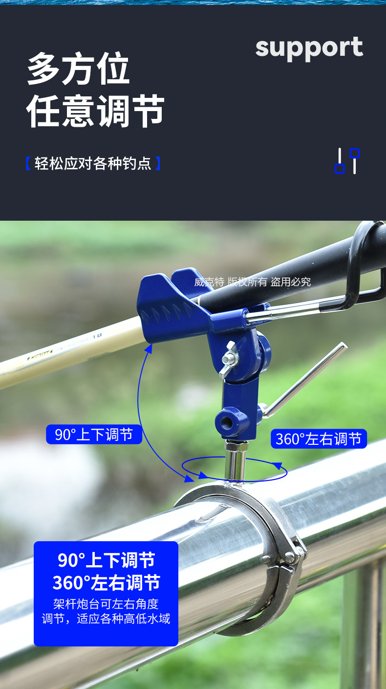 船钓支架竿架炮台围栏杆钓鱼支架船用快艇海钓拖钓游艇鱼竿支架座
