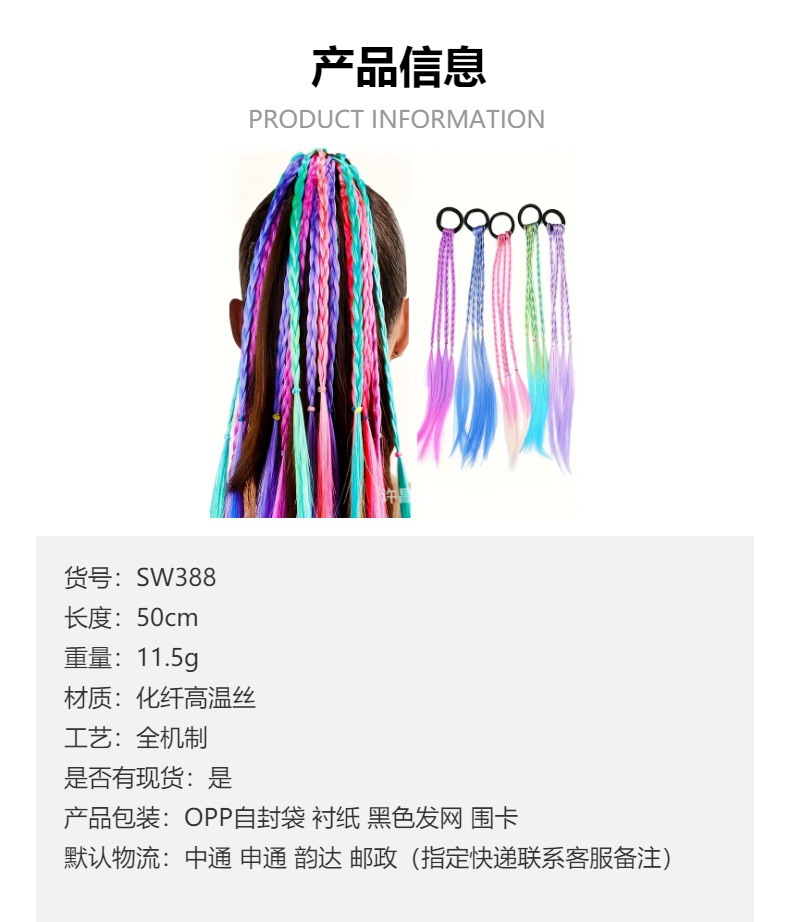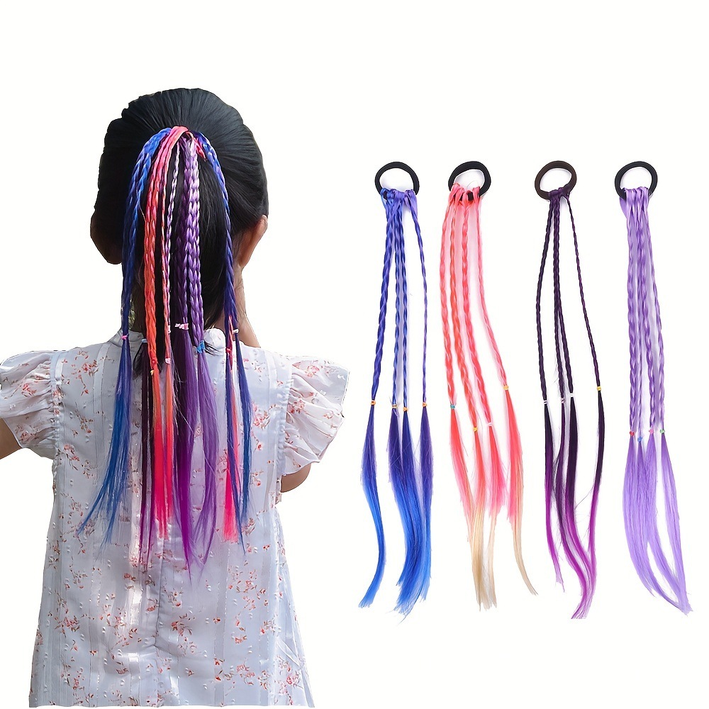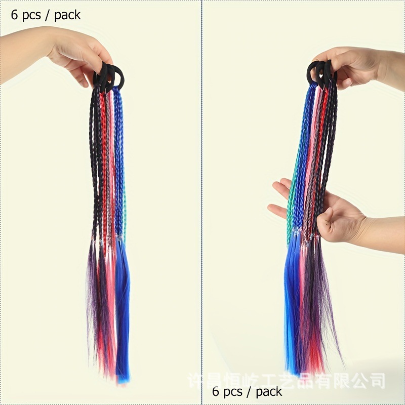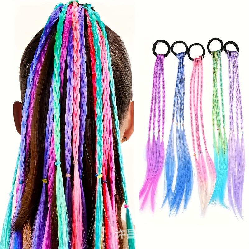 6 件套儿童女孩发饰套装:彩色编织假发、马尾辫发带、橡皮筋等!