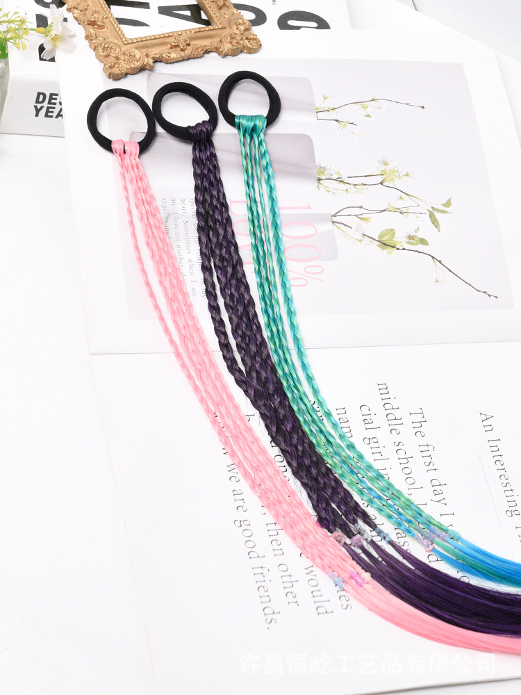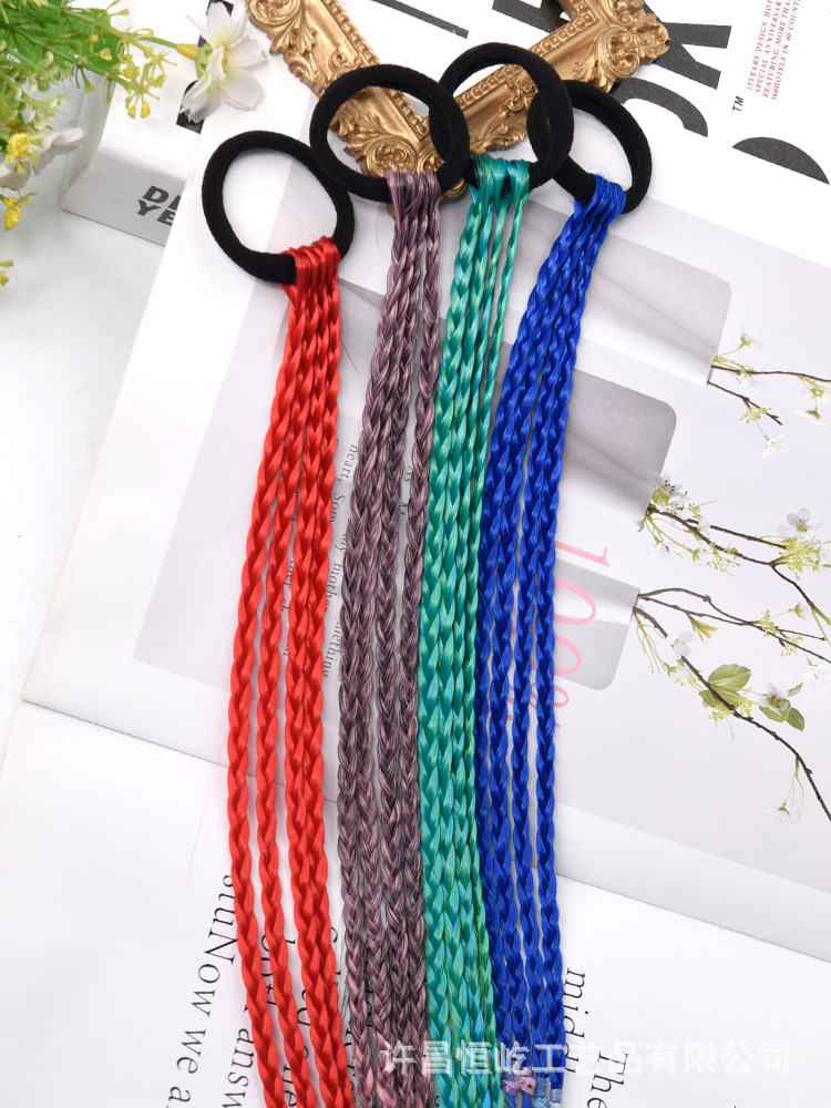 子供カラーのお下げのかつらの髪の輪のポニーテールの汚れたお下げのひもの女の子の髪の形をしています。