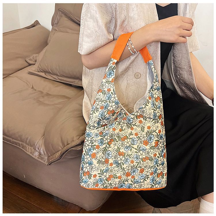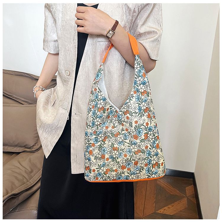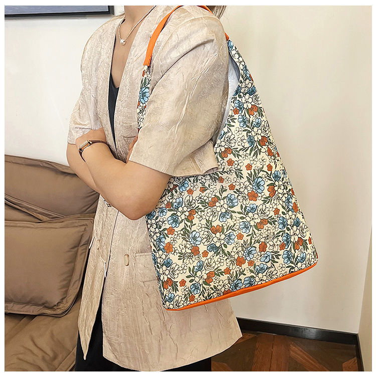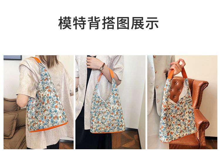 夏の新型ins風油絵花キャンバスバッグアンドロメダカジュアルバッグ
