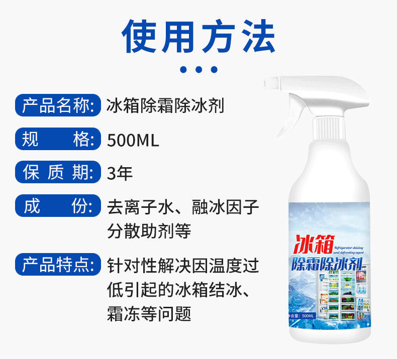 冰箱除冰剂冰柜结冰结霜解冻喷雾多功能冬季融雪除冰剂除味消臭剂