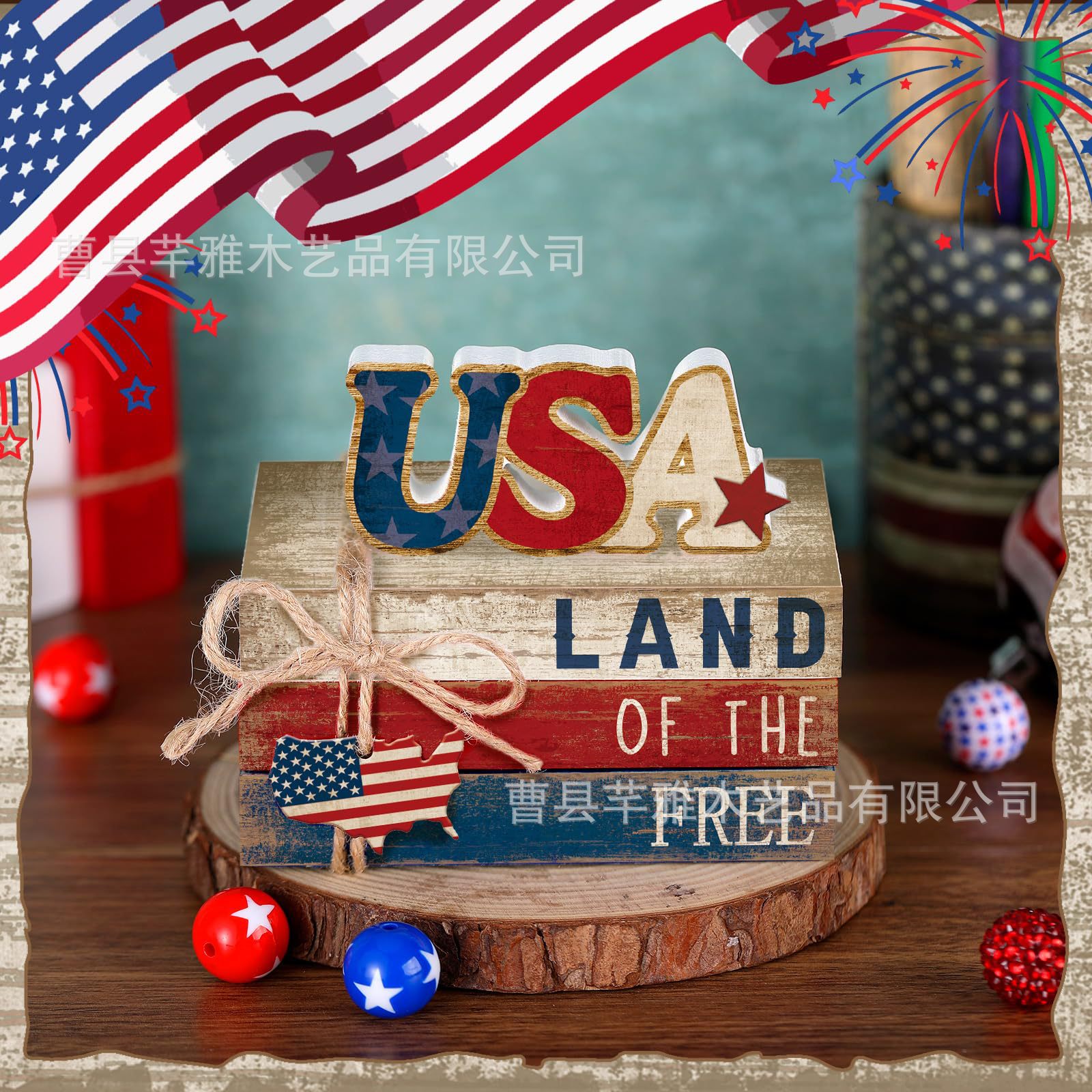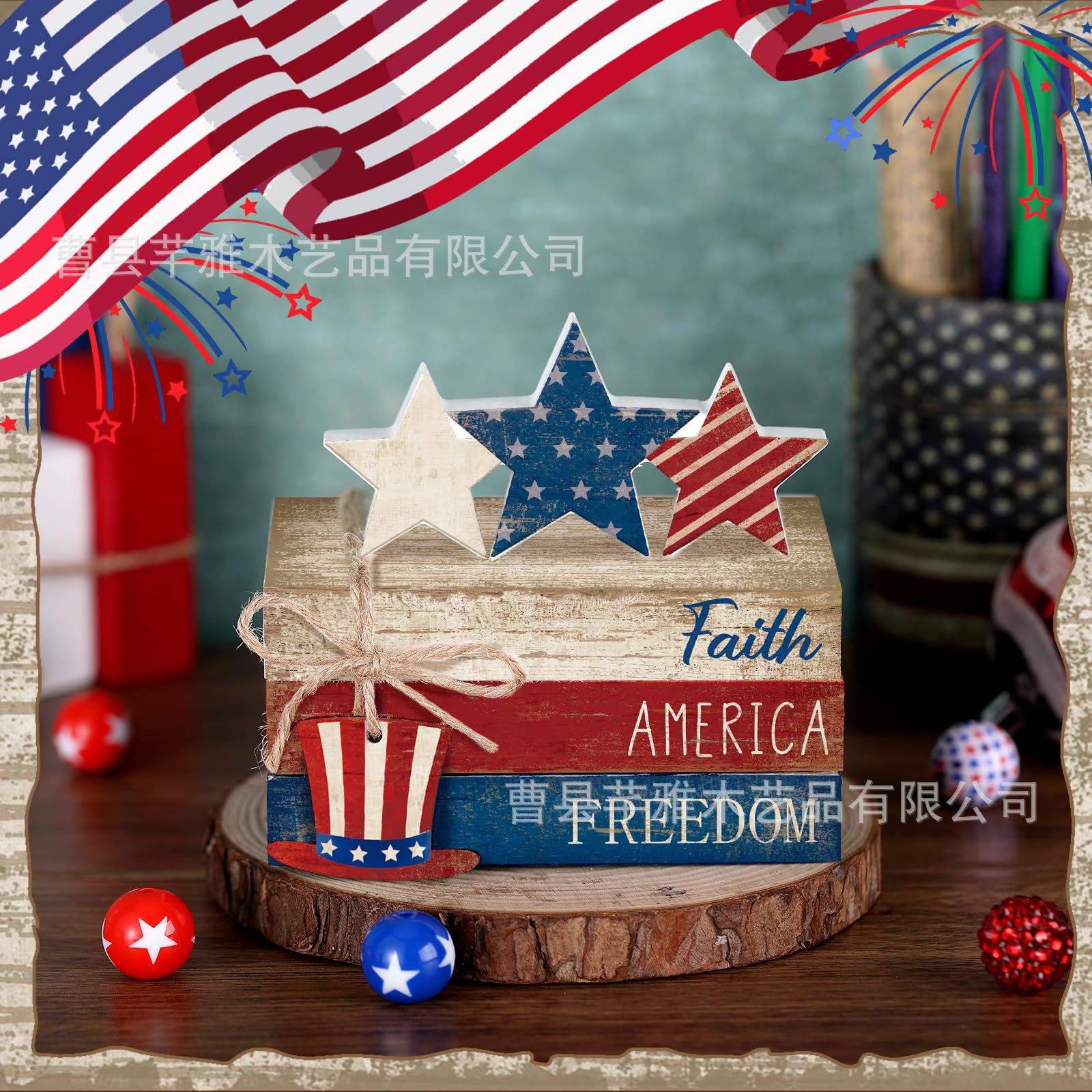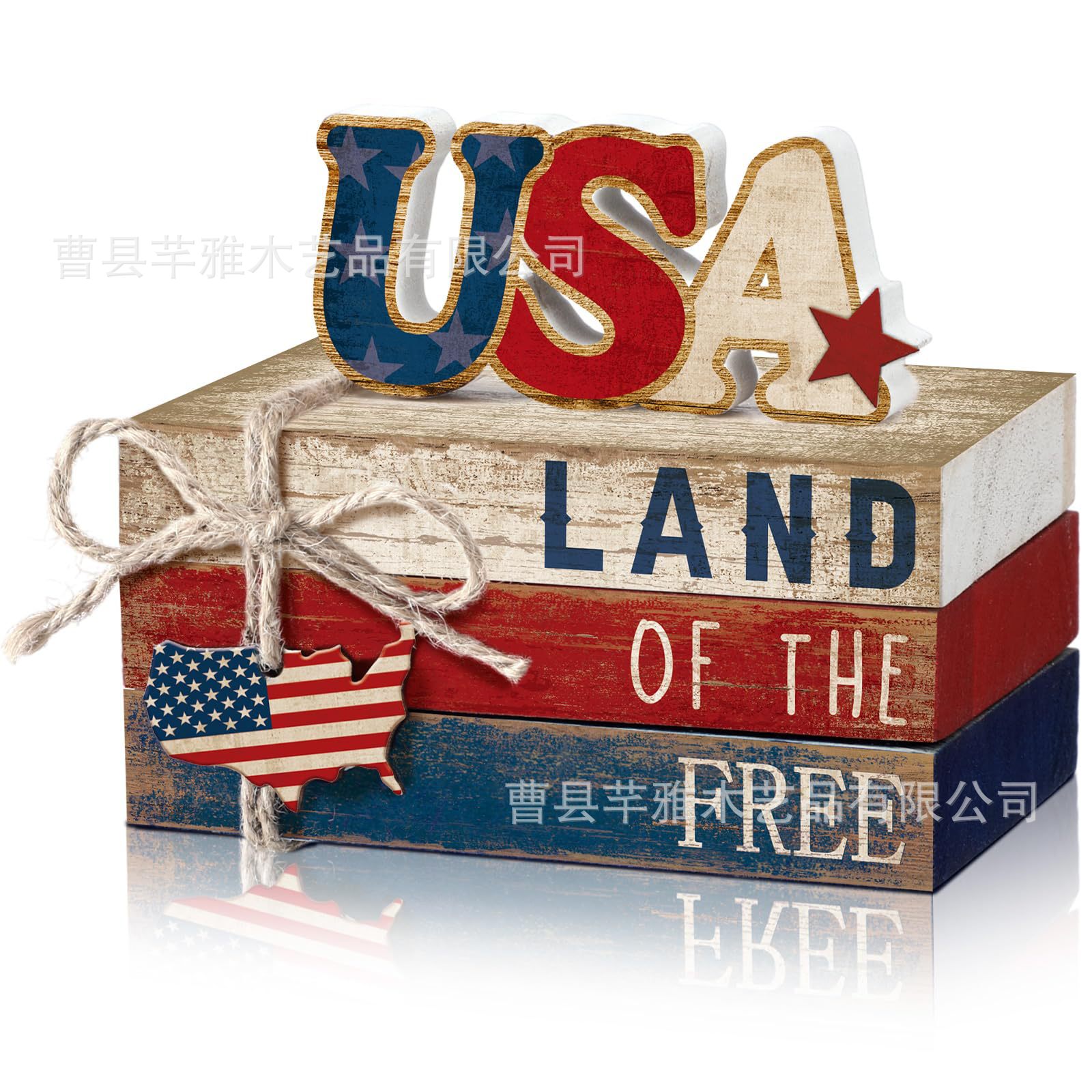 7月4日独立日木製装飾置物アメリカ独立日記念木製装飾木製装飾本