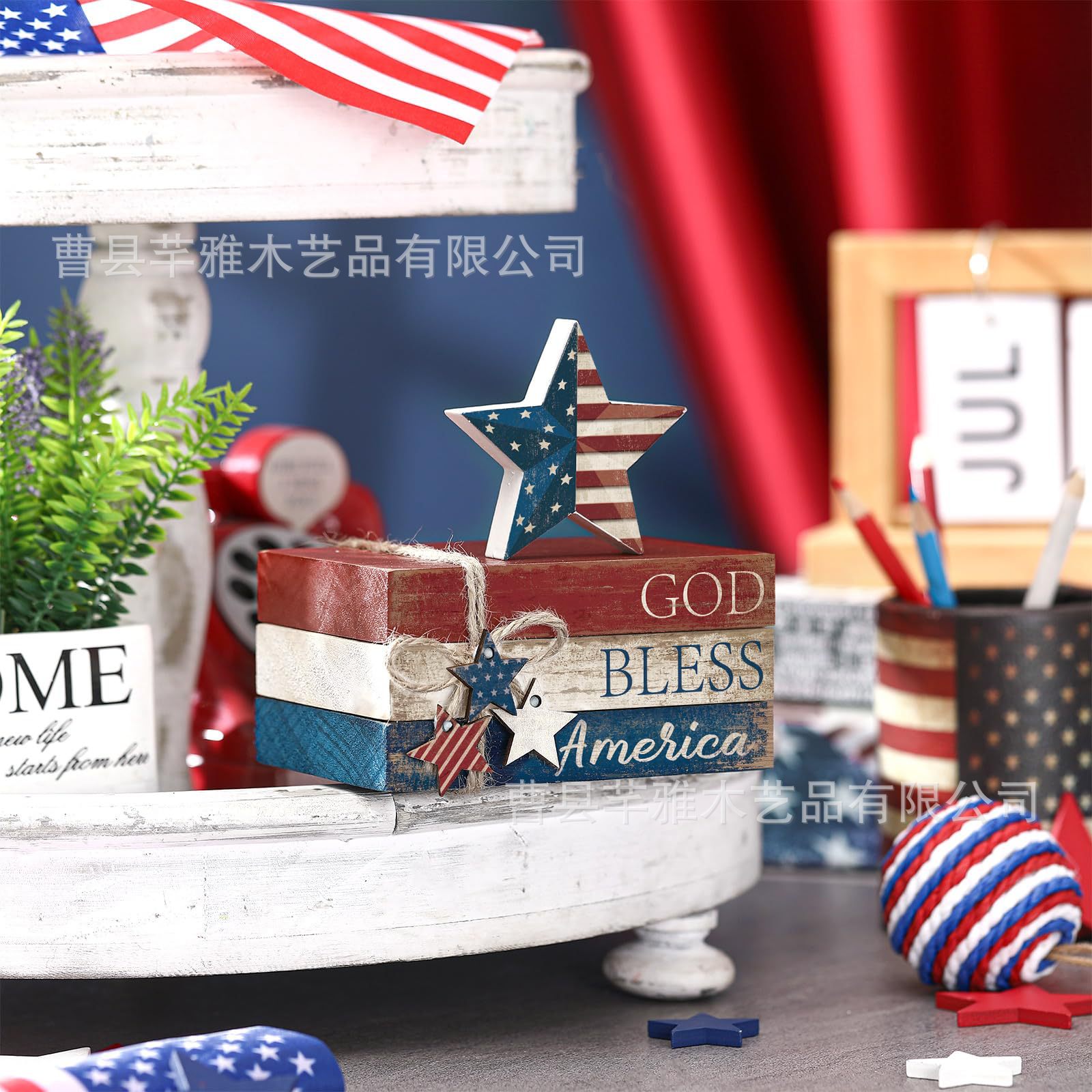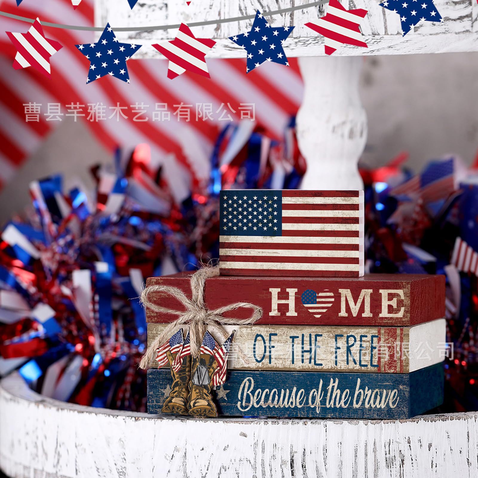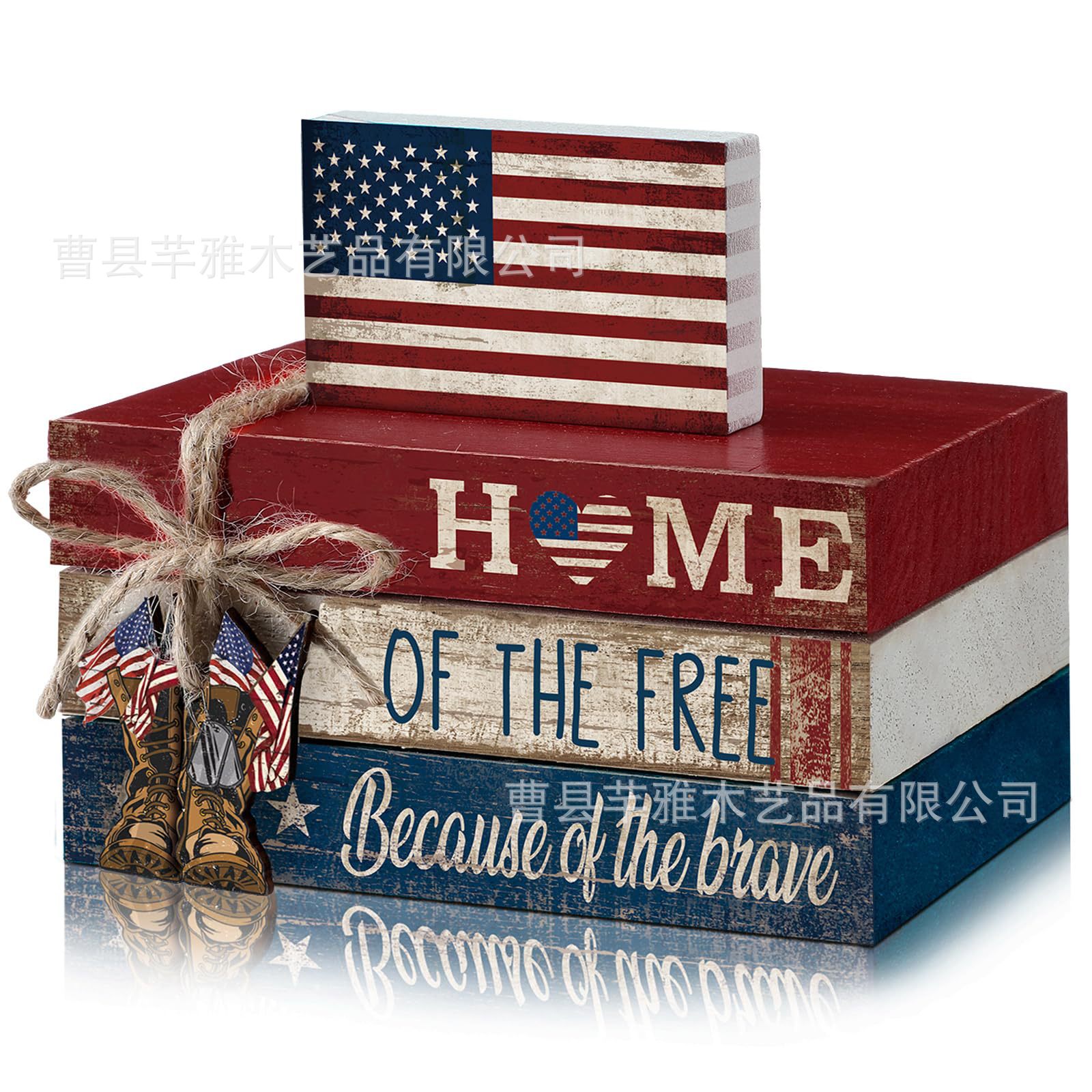 7月4日独立日木製装飾置物アメリカ独立日記念木製装飾木製装飾本