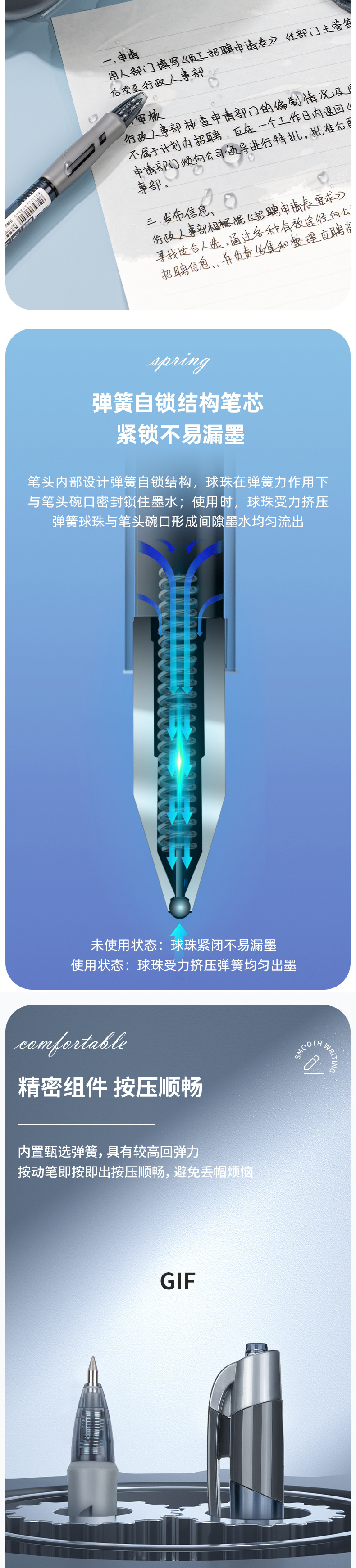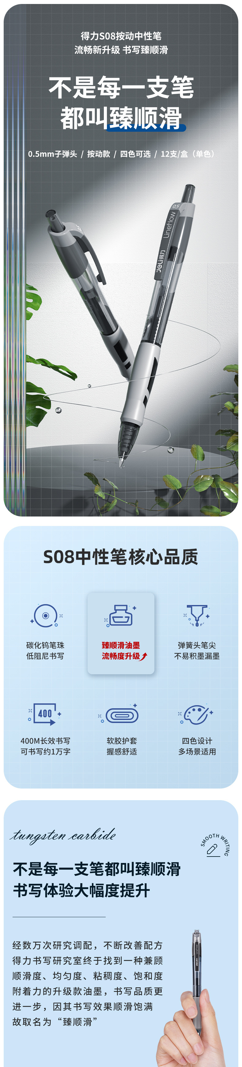 有力S08中性ペン0.5mm押しペン至高滑り子弾頭水性ペン学生用事務文房具
