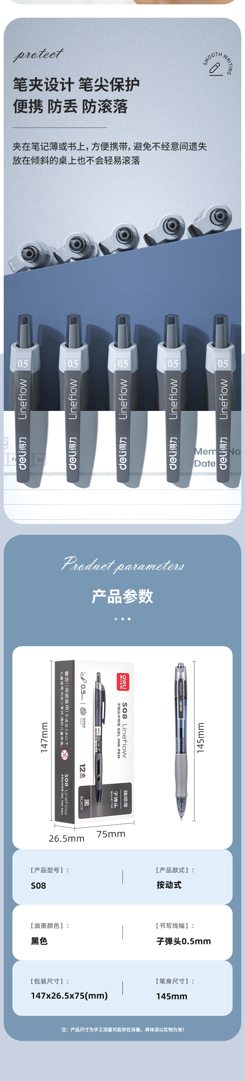 Deli/有力中性ペン0.5mm子弾頭押しペン学生日常筆記事務サインペン水性ペン