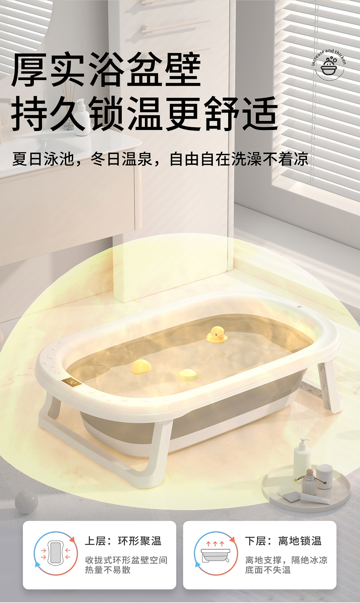 赤ちゃんのお風呂の温度は折り畳み可能です。