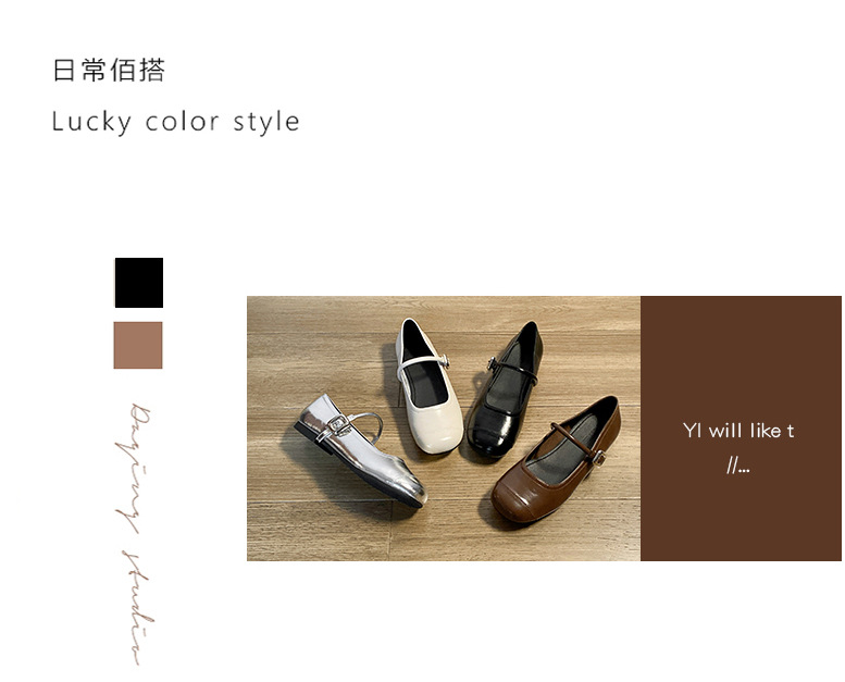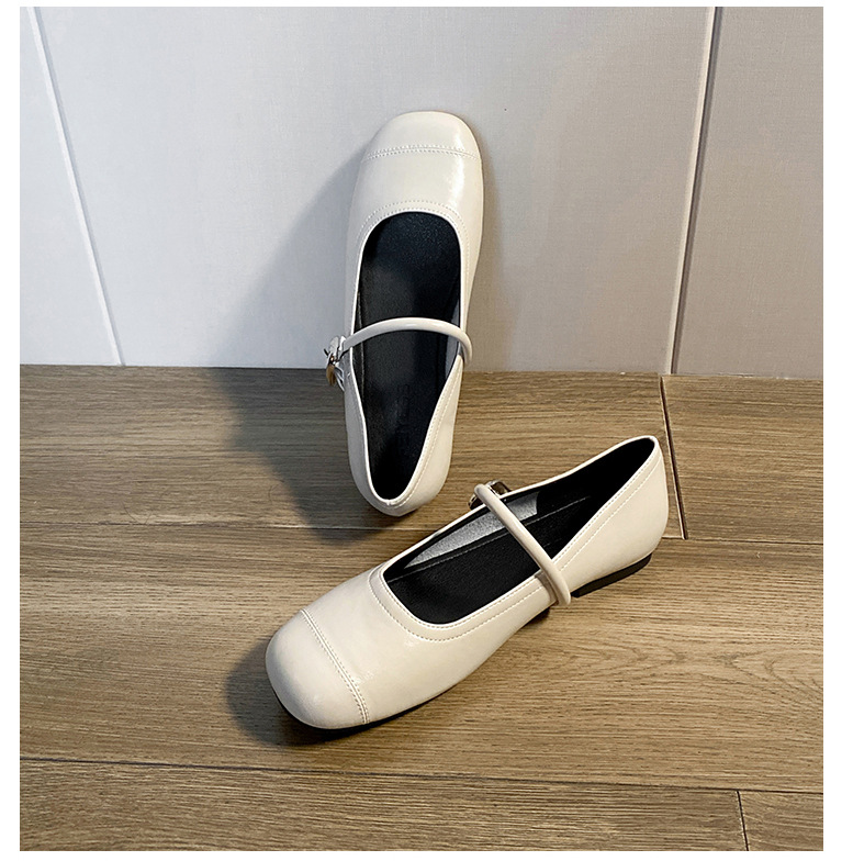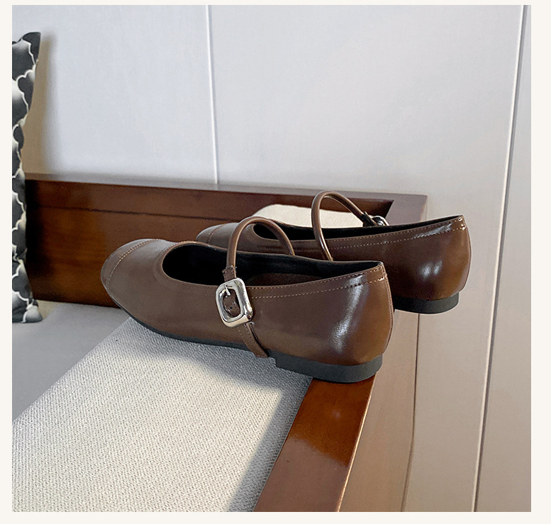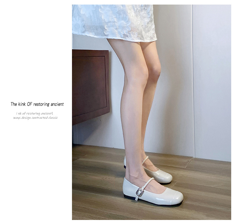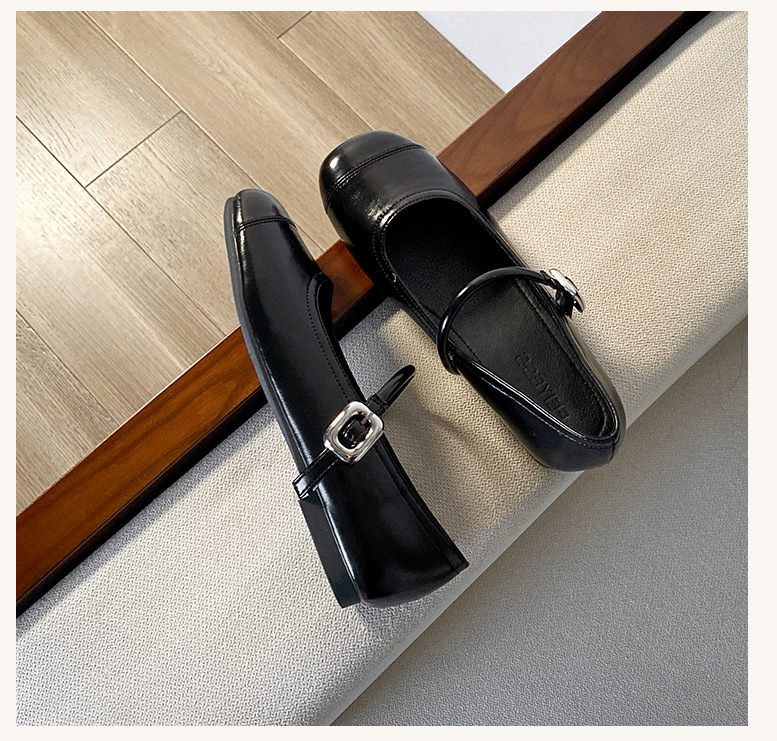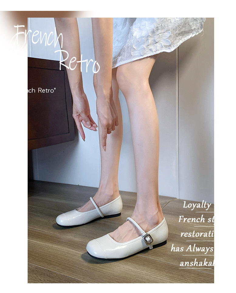 2025年新作 フレンチスタイル ラウンドトゥ フラット メリージェーンシューズ インヒール 超ソフト スクエアバックル レディース バレエシューズ イブニングシューズ