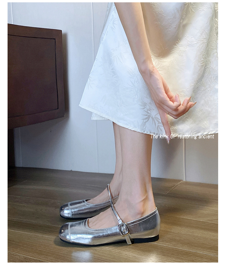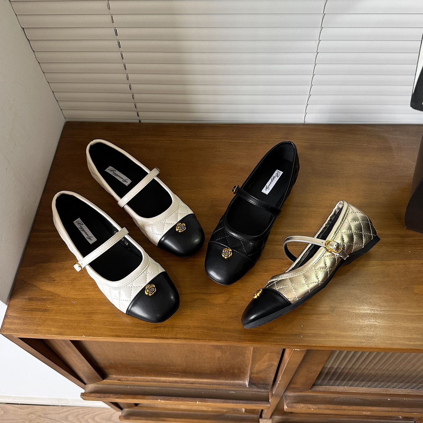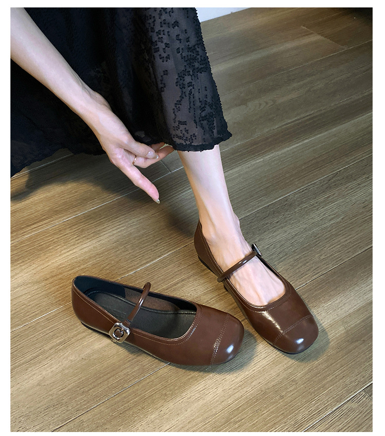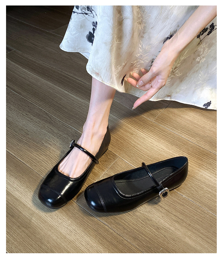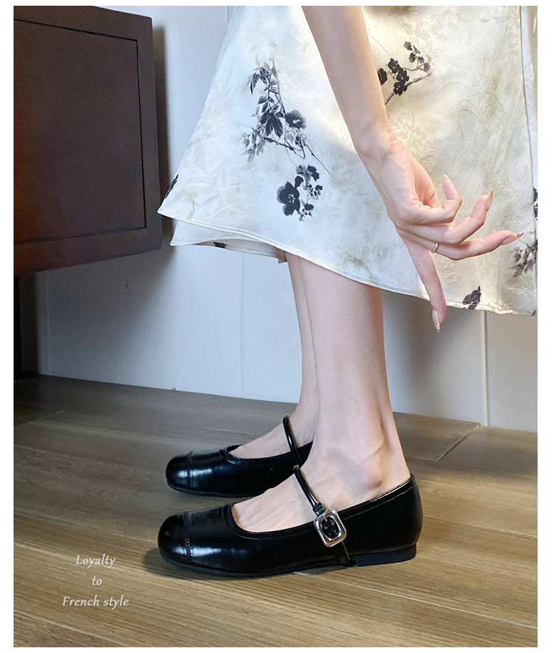 2025年新作 フレンチスタイル ラウンドトゥ フラット メリージェーンシューズ インヒール 超ソフト スクエアバックル レディース バレエシューズ イブニングシューズ