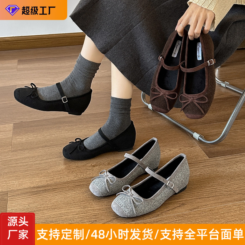 法式浅口单鞋女蝴蝶结芭蕾一字带玛丽珍鞋外穿增高软底一脚蹬鞋子