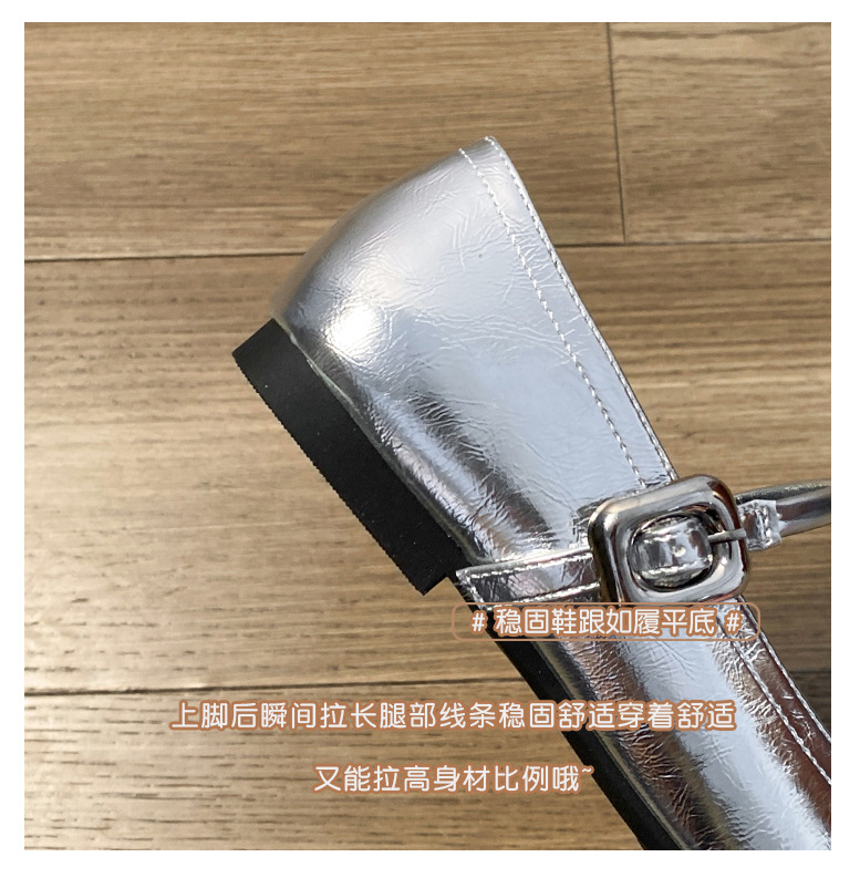 内增高玛丽珍鞋女2026新款法式方头亮片银色高跟鞋子外穿四季单鞋
