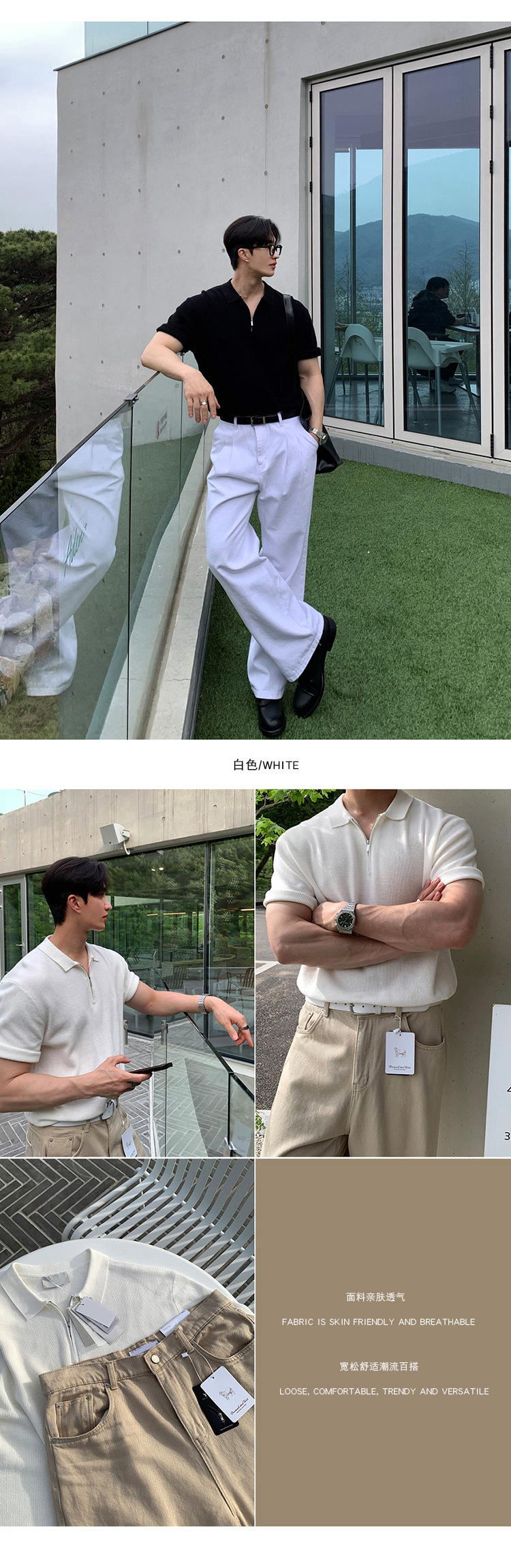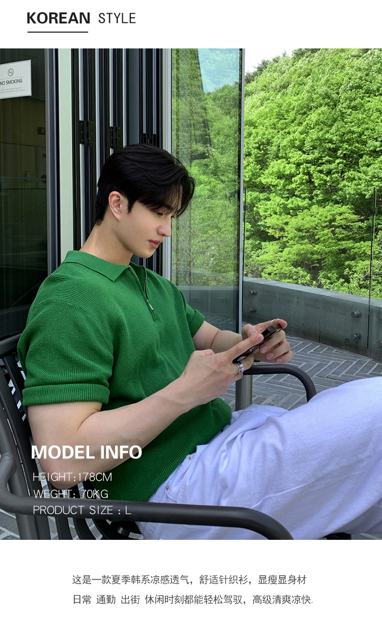 As清河軽熟老銭風質感ニット男半袖夏通気韓国版百合ファッション上着がゆったりしています。