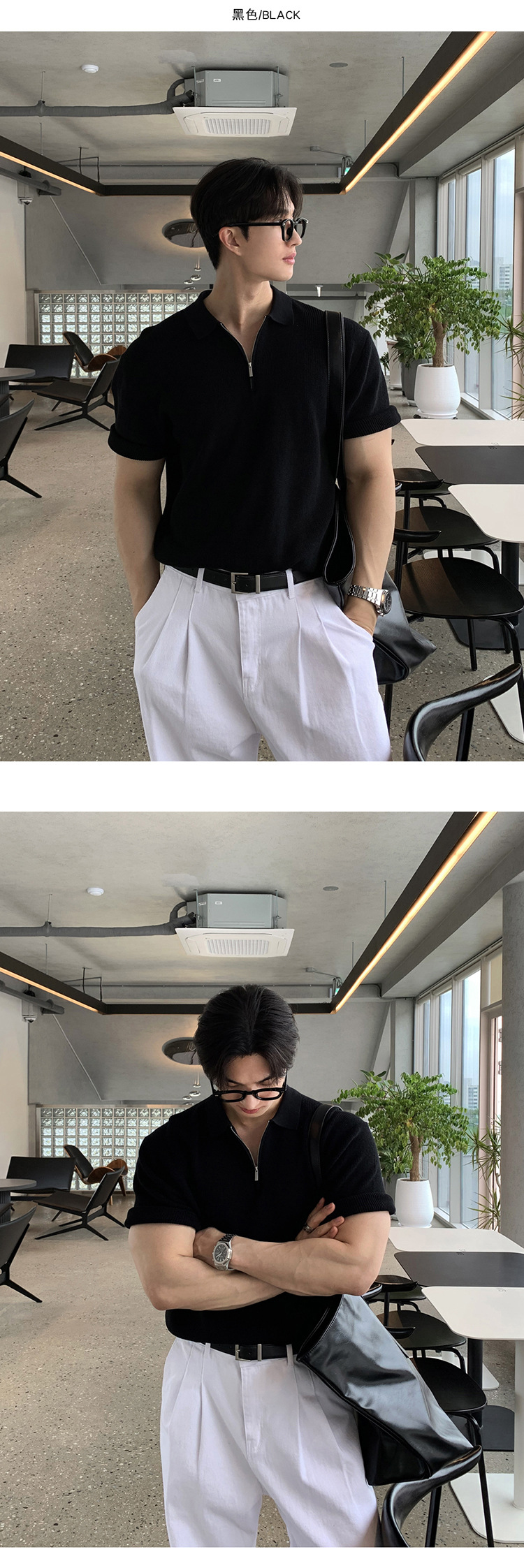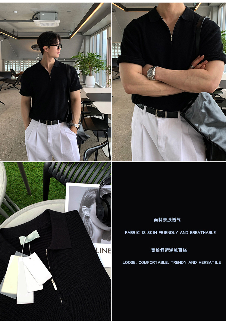 ASCLO夏の韓国版の襟をめくるpoloシャツの男性のファッションニットの半袖tメンズの純色の新型の上着のニットウェア