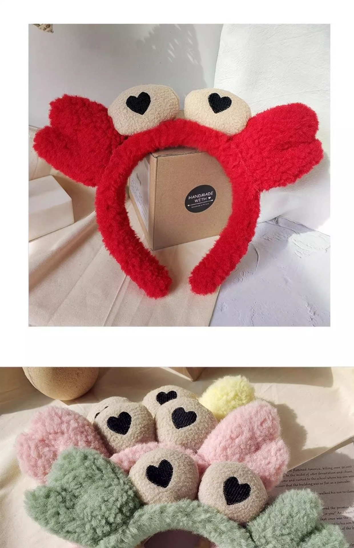 1#赤いカニのヘッドバンド,2#ライトピンクのカニカチューシャ,3#青いカニのヘッドバンド,4#黄色いカニのヘッドバンド,5#ピンクのカニのヘッドバンド,6#緑のカニのヘッドバンド