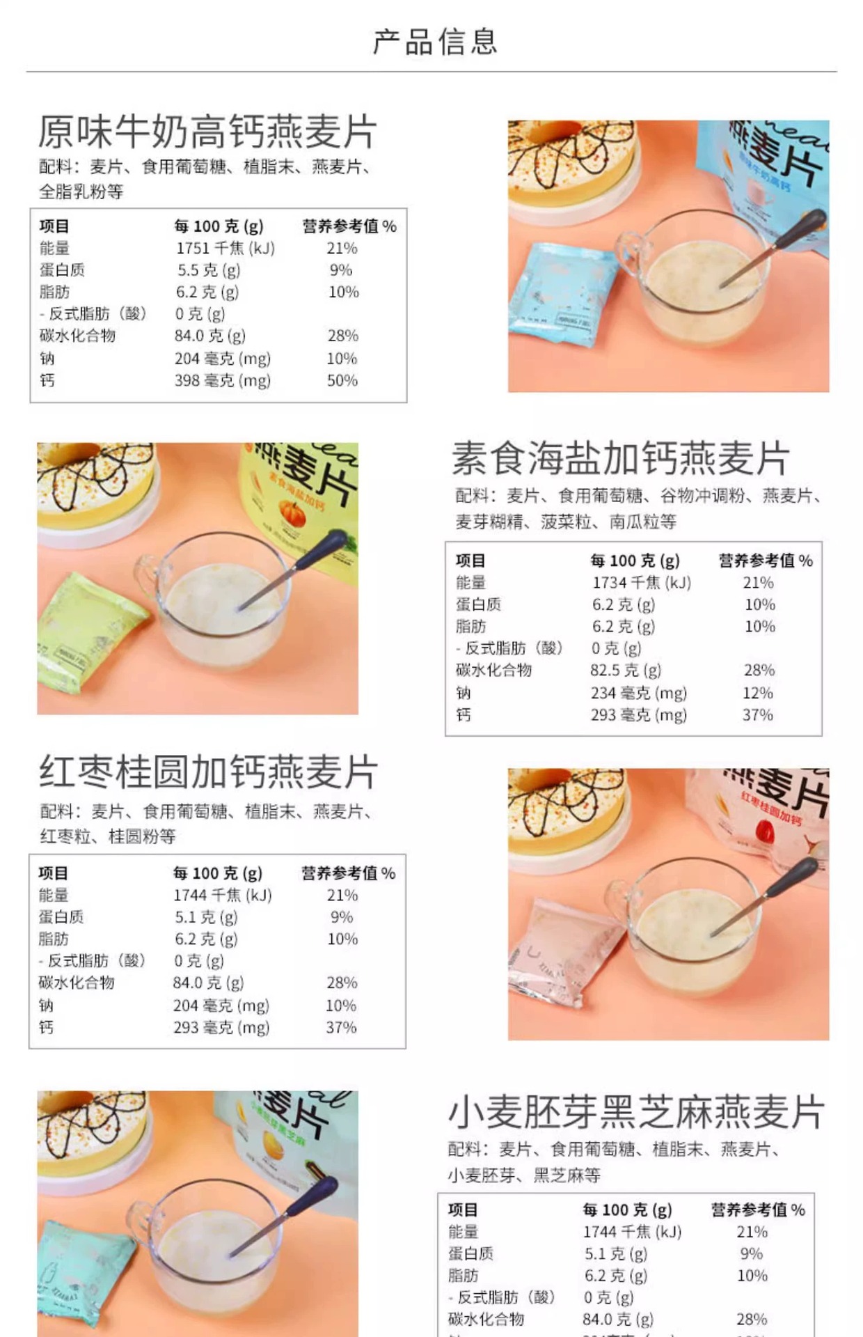 パッケージ仕様 オリジナルミルク高カルシウムオートミール 240g,レッドデーツとリュウガンとカルシウムオートミール 240g,ベジタリアン ハイヤン プラス カルシウム オートミール 240g