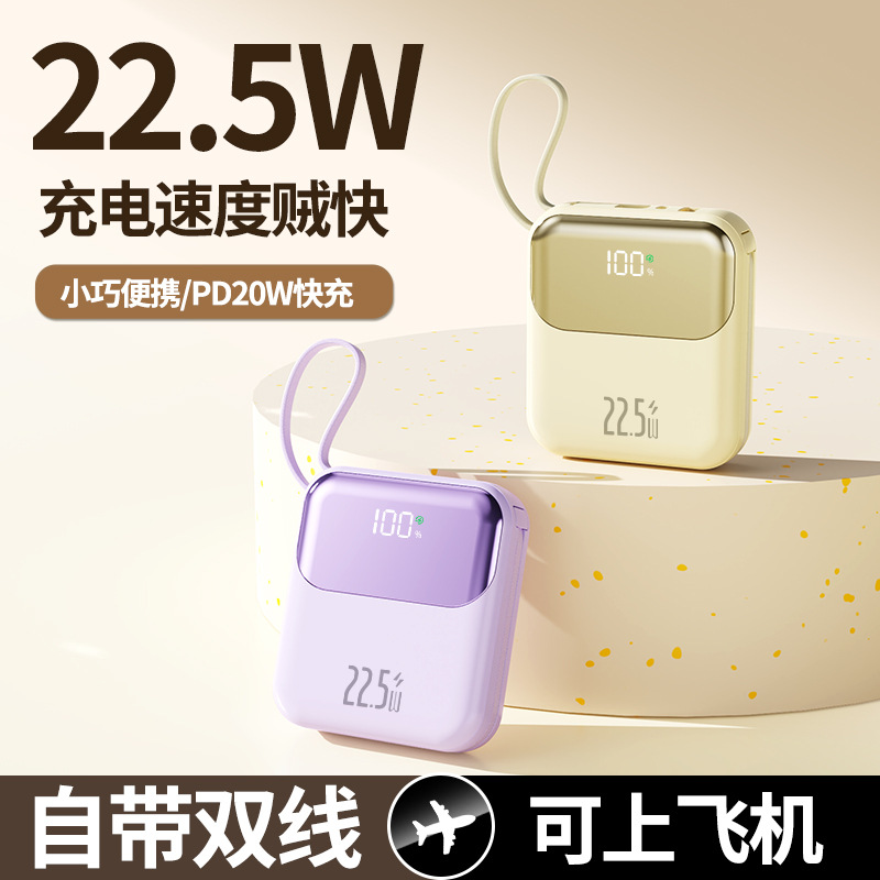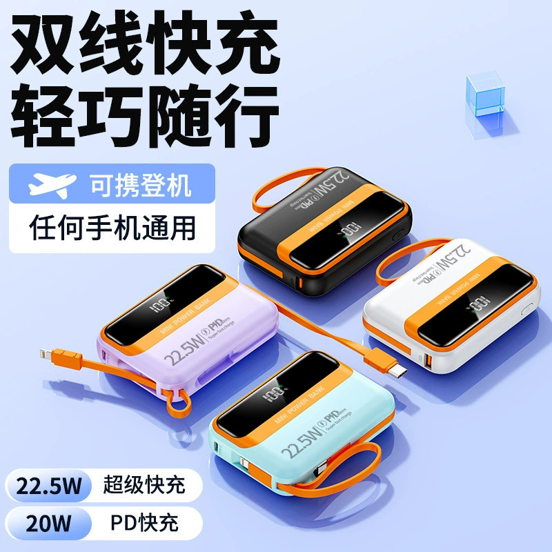 ミニ内蔵ケーブル付き20000mAhモバイルバッテリー大容量ポータブル超急速充電22.5Wモバイル電源卸売