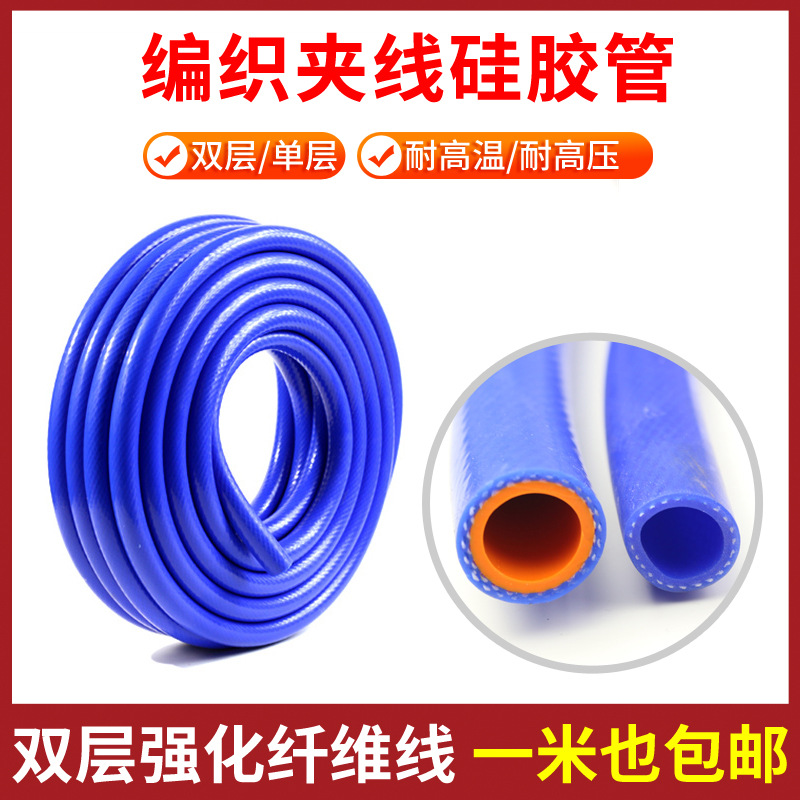 編組シリコンホース耐高温高圧ホース二重青色クリップ温風水道管蒸気管シリコンゴム管