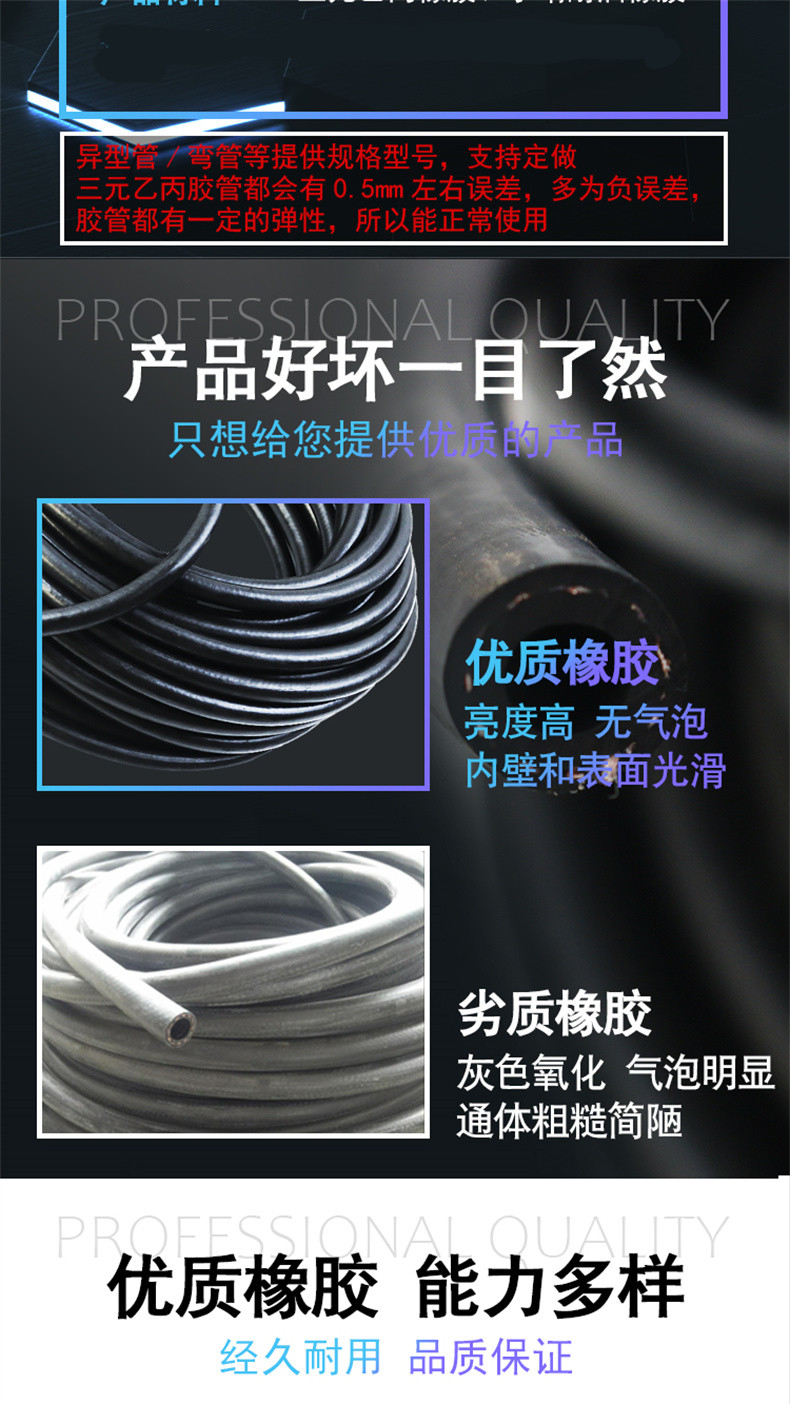 批发三元乙丙橡胶管光面epdm纯胶加线发动机冷却液水管防冻液胶管