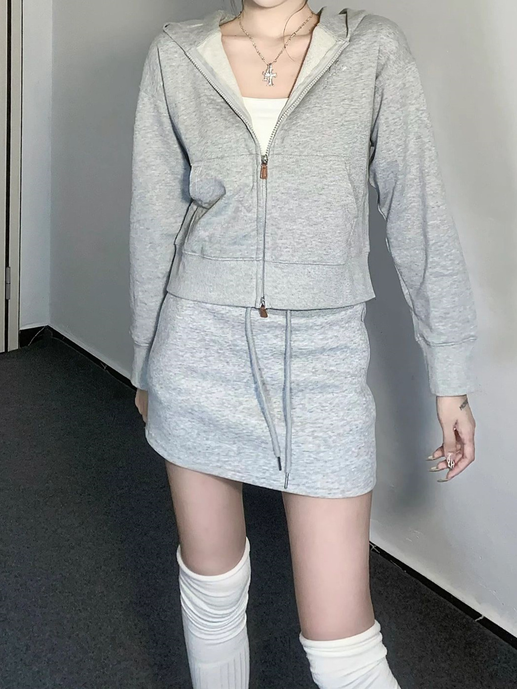 グレーの毛の半身のスカートの秋冬の女性のa字の短いスカートの太っているmmの冬の厚い半分のスカートの黒色の高い腰はヒップのスカートを包みます
