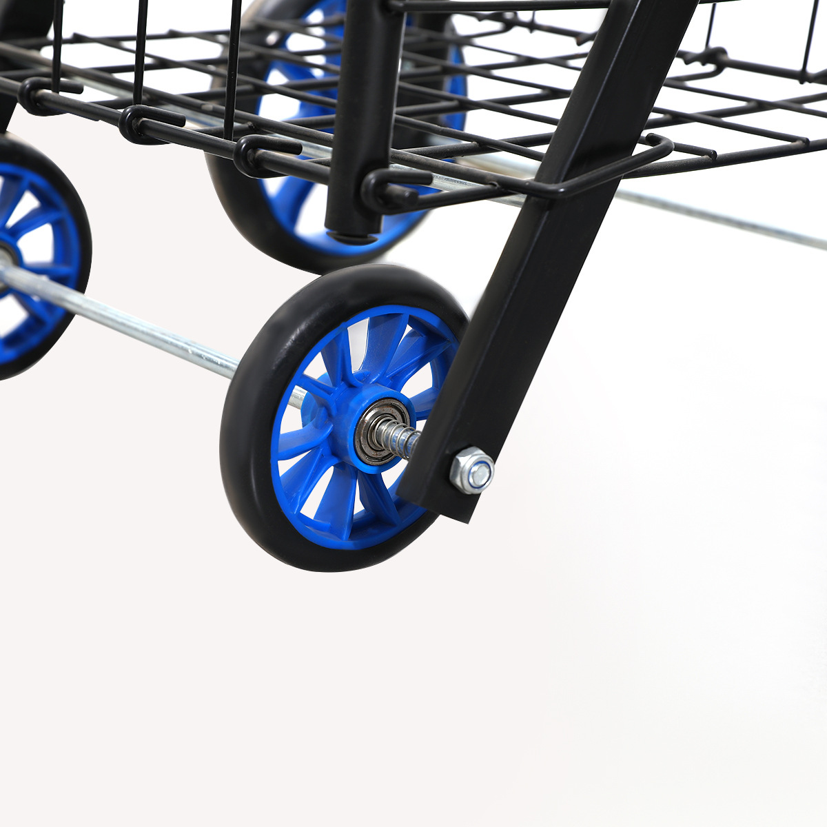 韓国系ポータブル折りたたみスーパーマーケットショッピングカート移動式多機能トロリー鋼管格子模様トロリーカート
