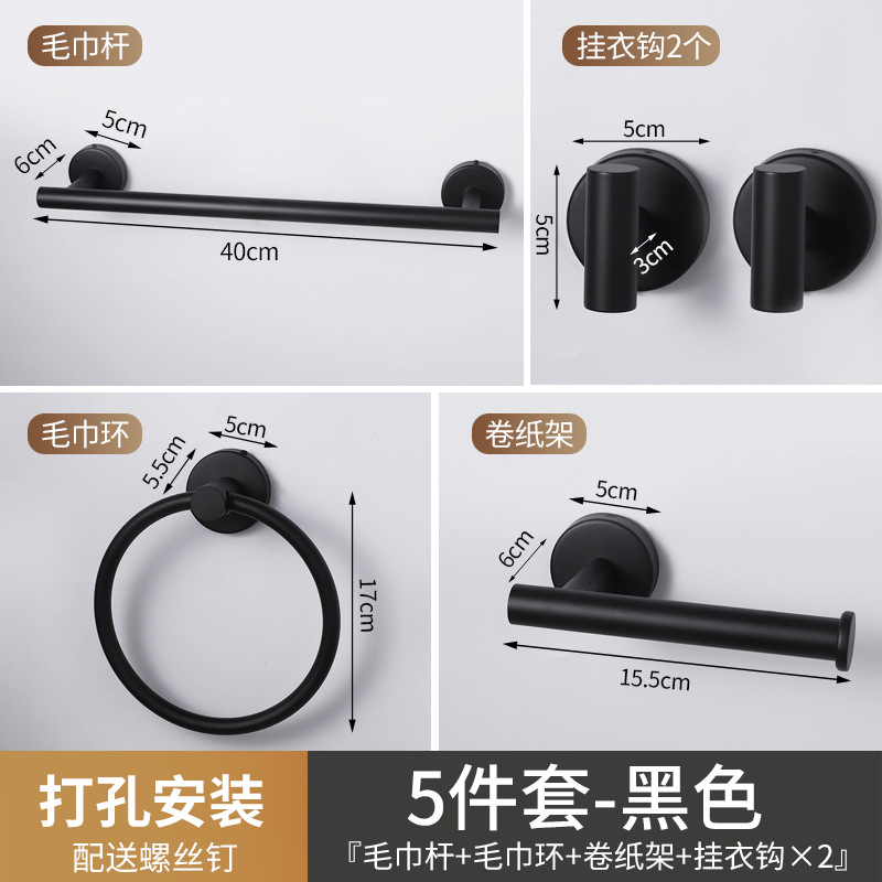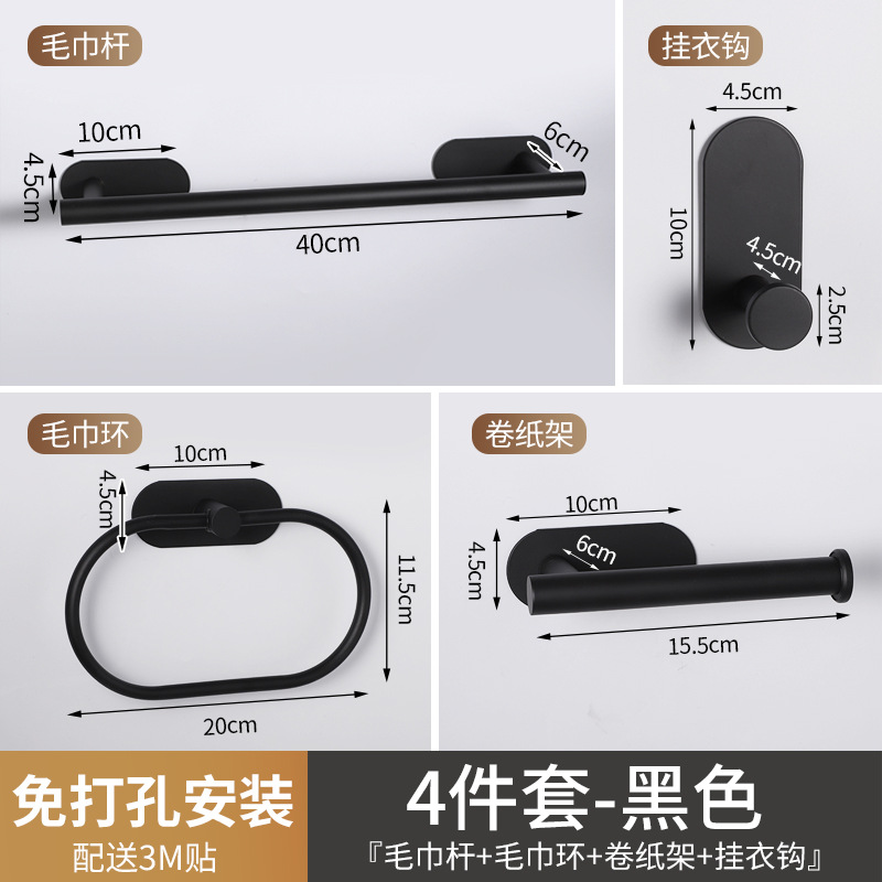 円形無釘タオルラックセット浴室トイレタオルバータオルリング単棒フックティッシュラック黒