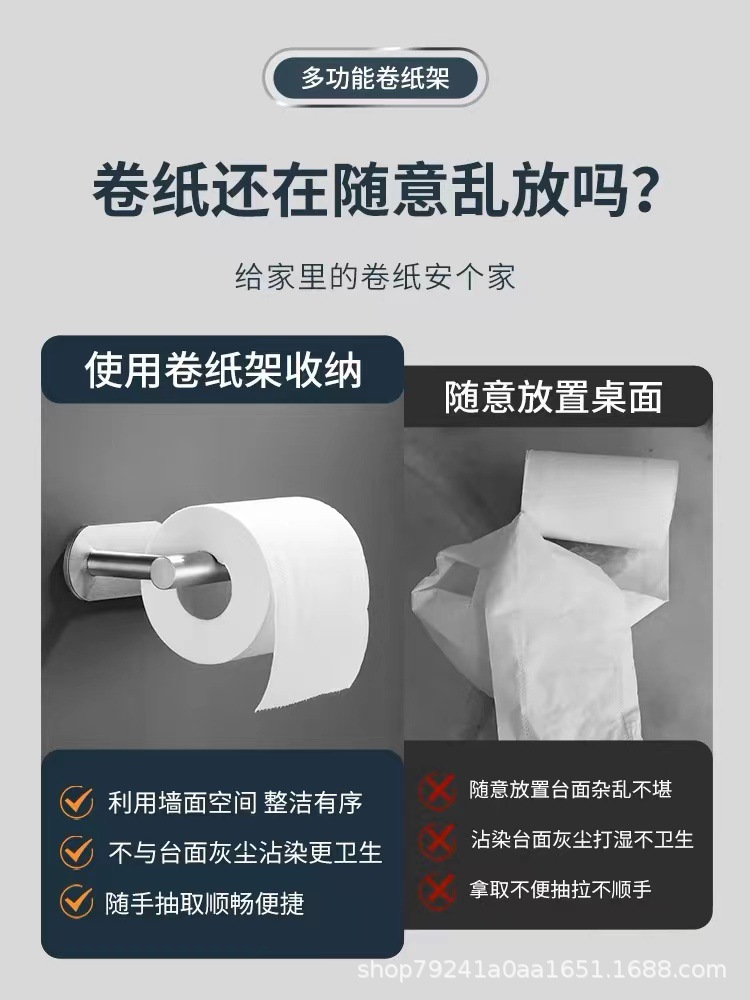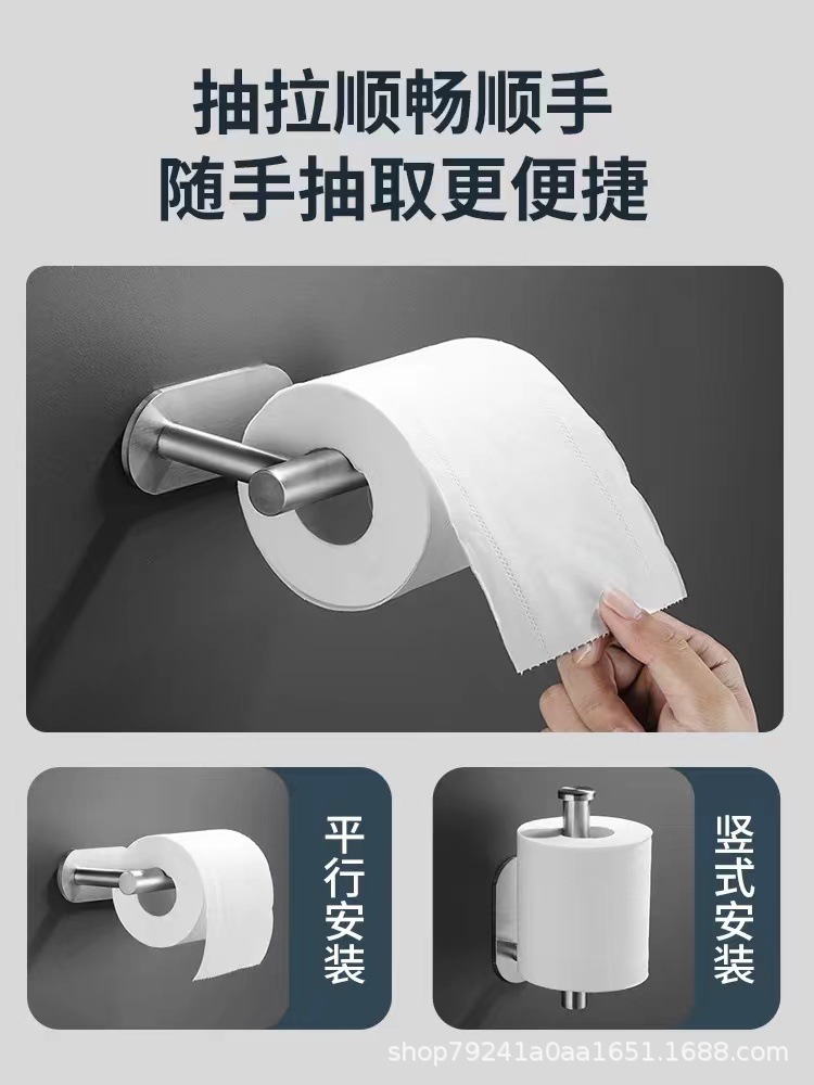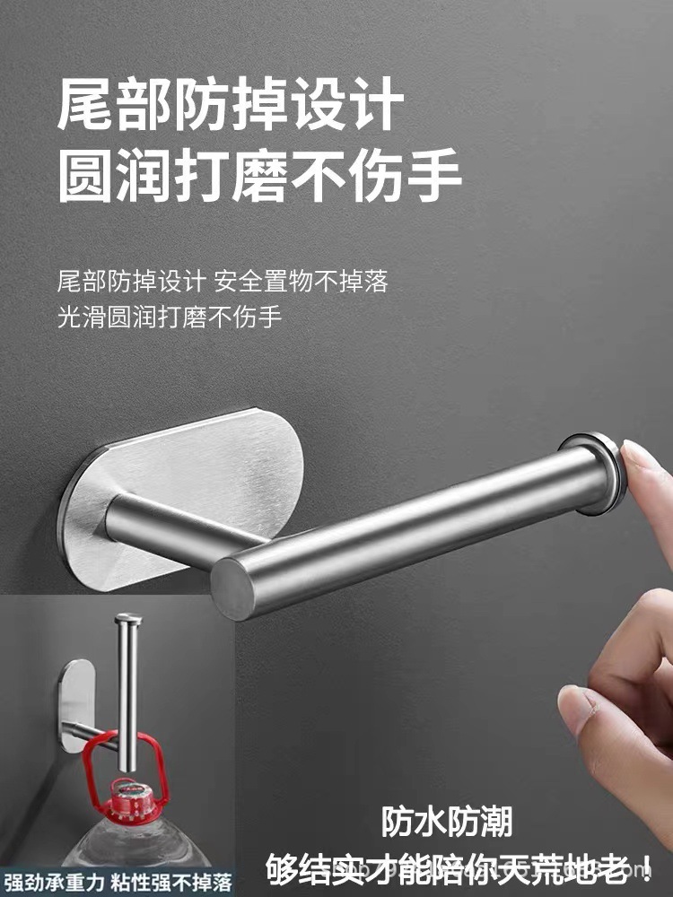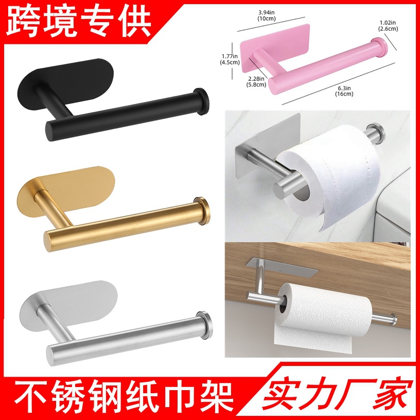 不锈钢卷纸架免打孔浴室自粘卷筒厕纸架挂壁式厨房餐巾架卫生纸架