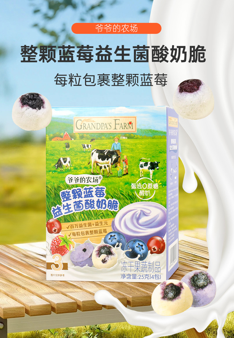 祖父の農場はブルーベリー益生菌ヨーグルトが脆い25g(4包) 冷凍乾燥果物の原粒が豆ヨーグルトを溶かす