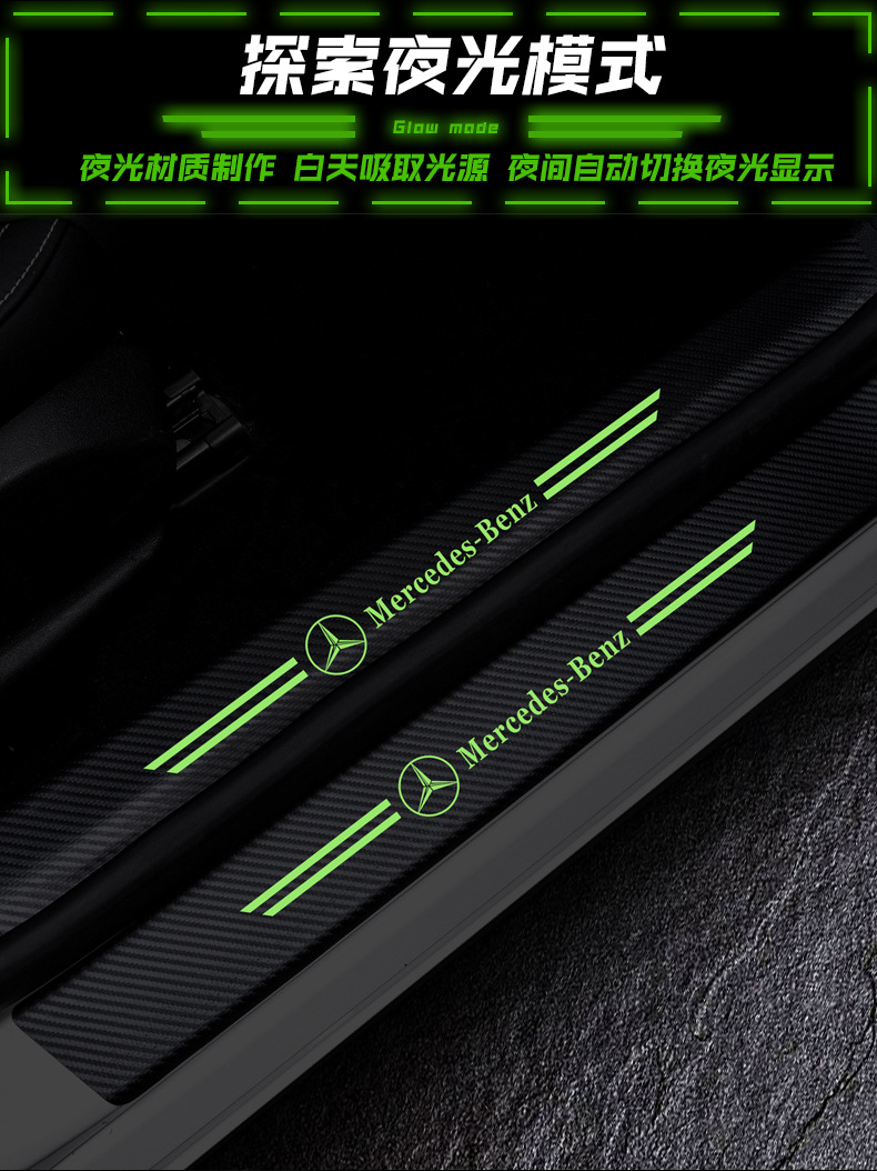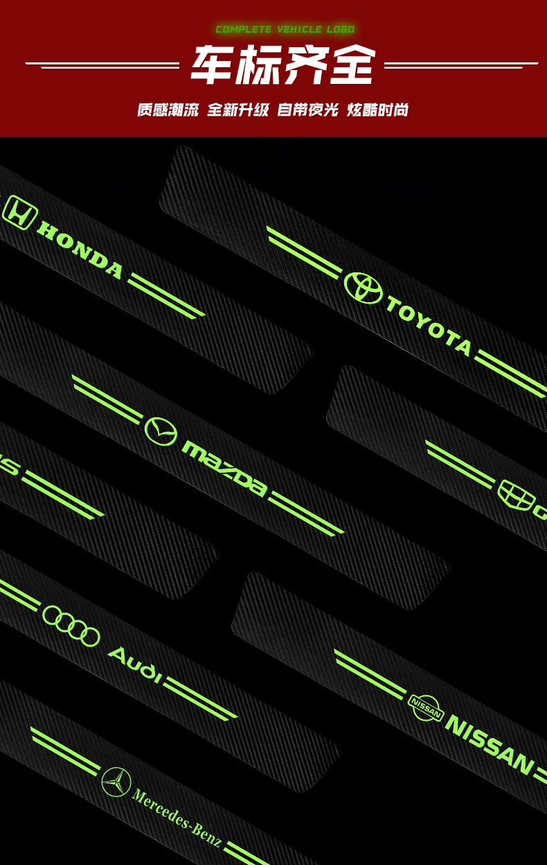 暗闇で光る車のドアシルストリップ、踏みつけ防止保護ステッカー、ウェルカムペダル、トランクの傷防止ステッカー、ユニバーサル用品