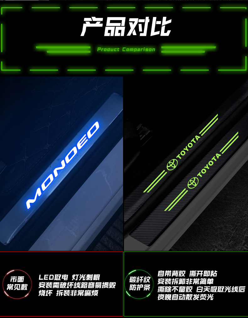 自動車夜光しきい値条踏み防止保護条通用炭素繊維発光金トランクペダル防傷衝突防止条