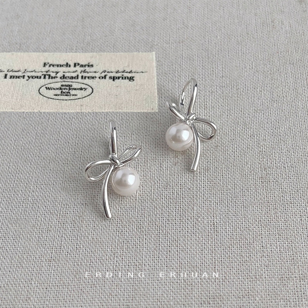 人気の真珠品質の女性用リボンイヤリング、ニッチデザイナー、2025年女性用新作イヤリング工場