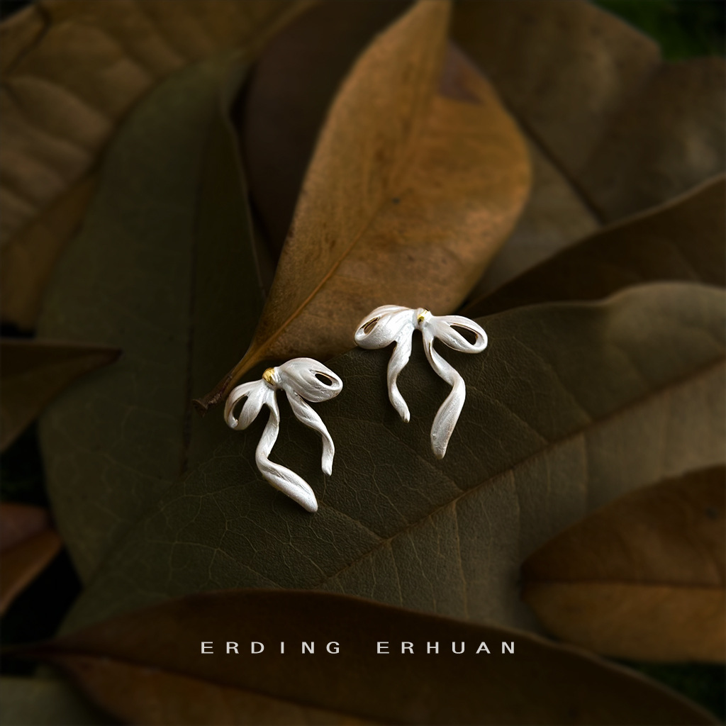清新甜美蝴蝶结925银针薄涂工艺白色简约通勤百搭耳饰工厂 耳钉女
