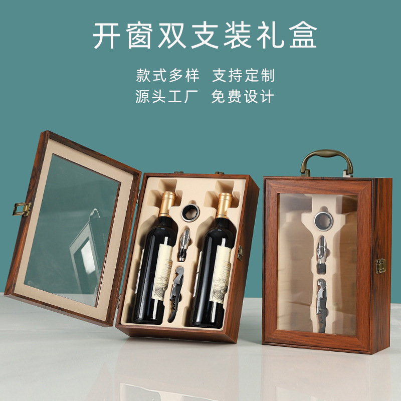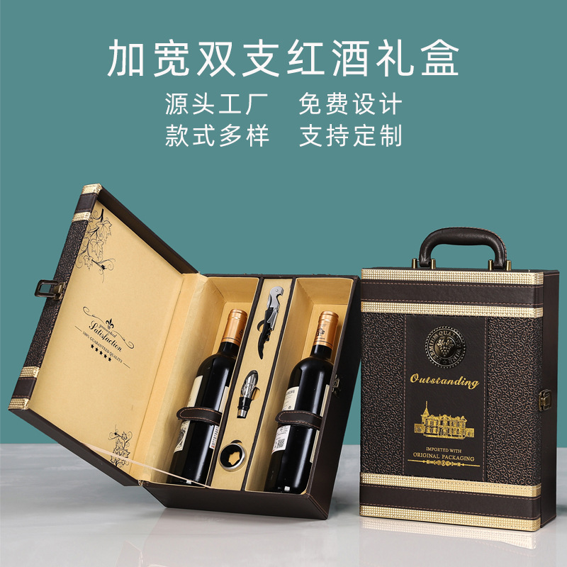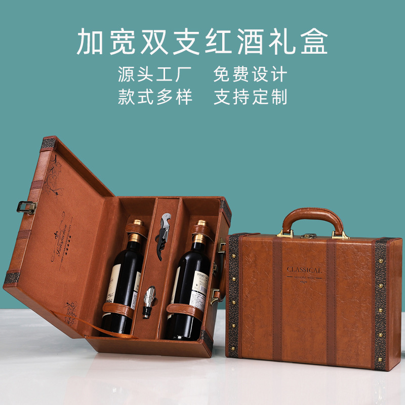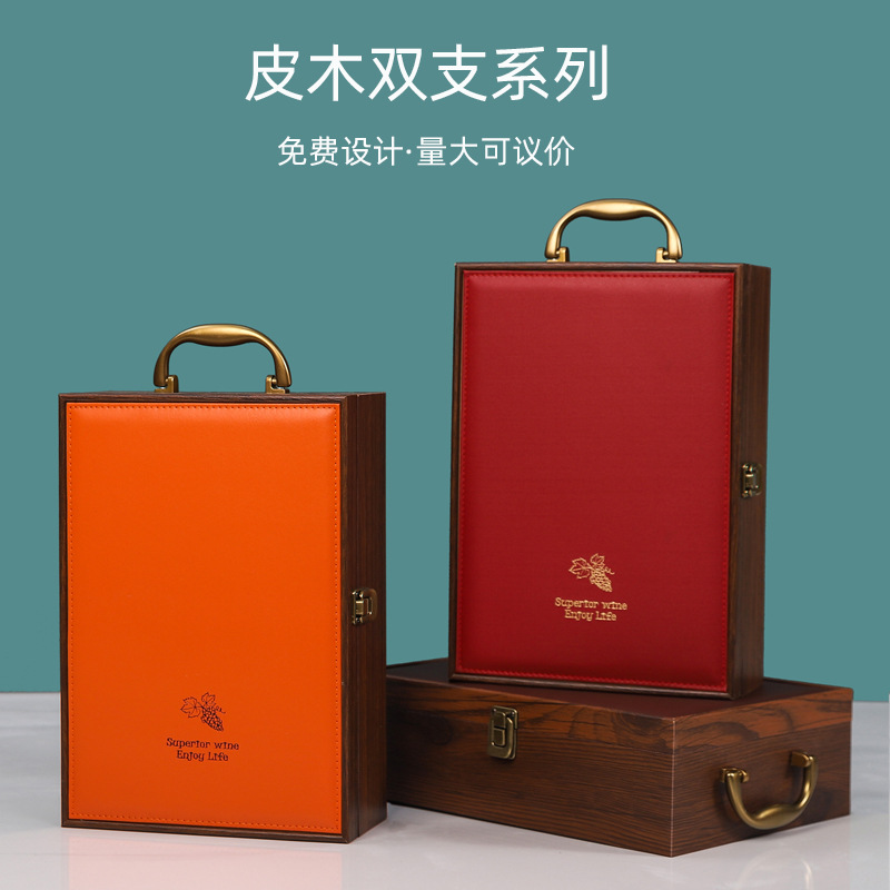 新しい高級ワイン包装ギフトボックス木箱ギフトボックス箱二本入れ皮箱ワイン包装箱木箱