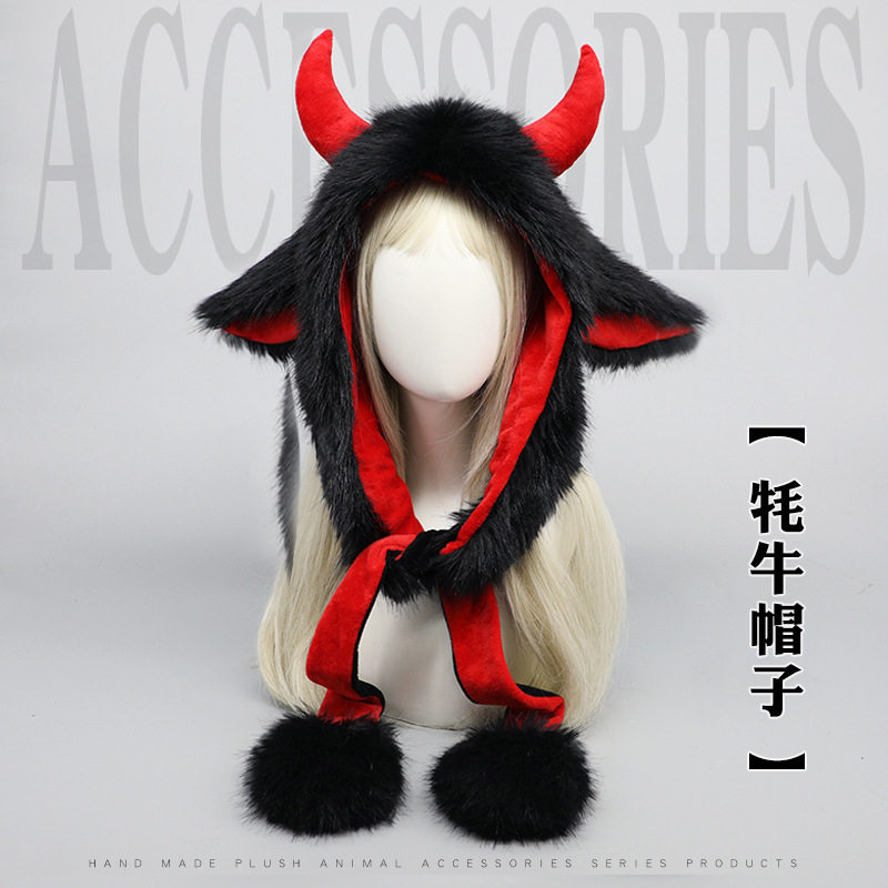 动漫周边兽耳帽子牦牛可爱毛绒帽子户外护耳帽ins潮流帽子