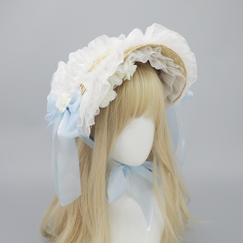 ロリータ帽子花铃手作波ナイトマルチカラーBNTオリジナルデザイン田园风lolita麦わら帽子女