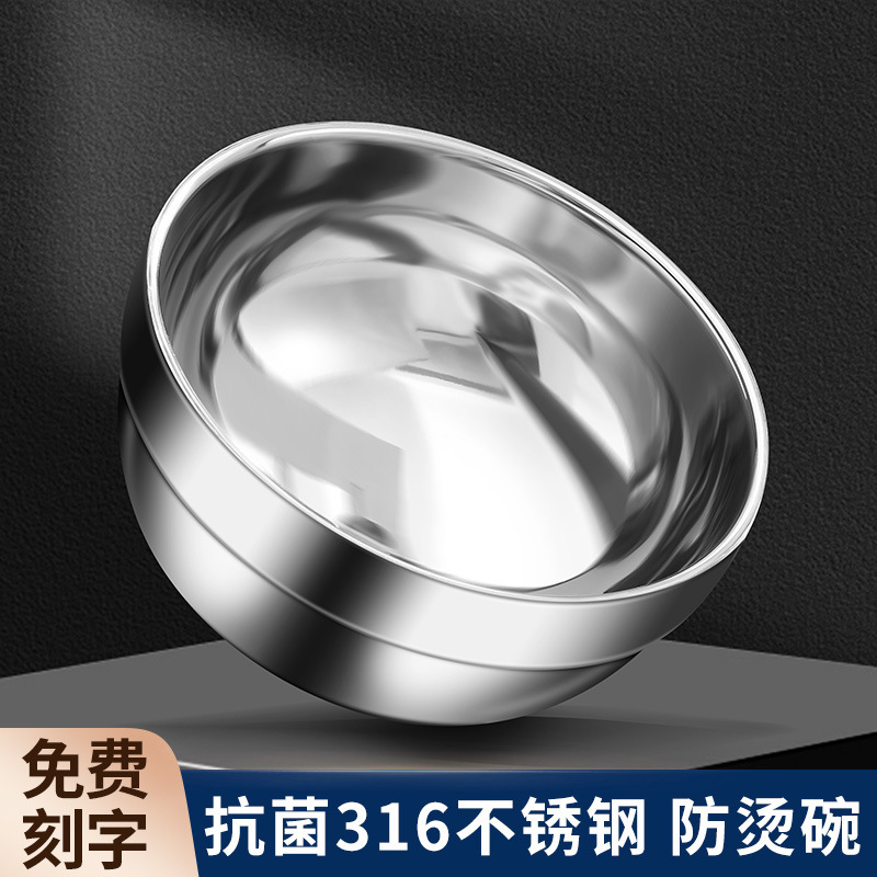 316不锈钢饭碗食品级304小碗家用儿童汤碗双层学生铁碗加厚防烫碗
