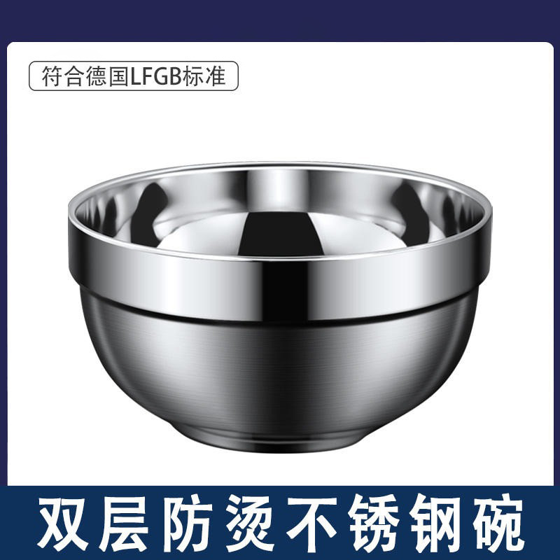 304不锈钢碗商用不锈钢汤碗加厚双层铂金碗食堂学生不锈钢饭碗