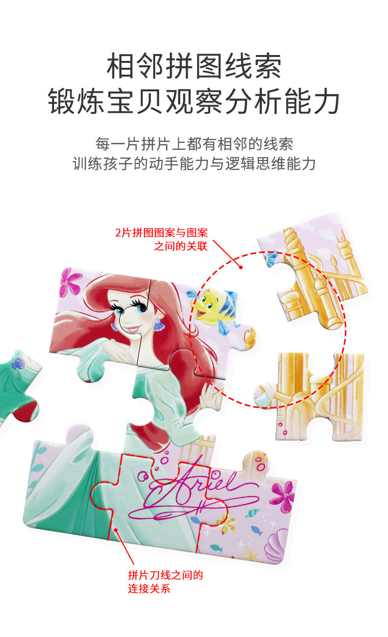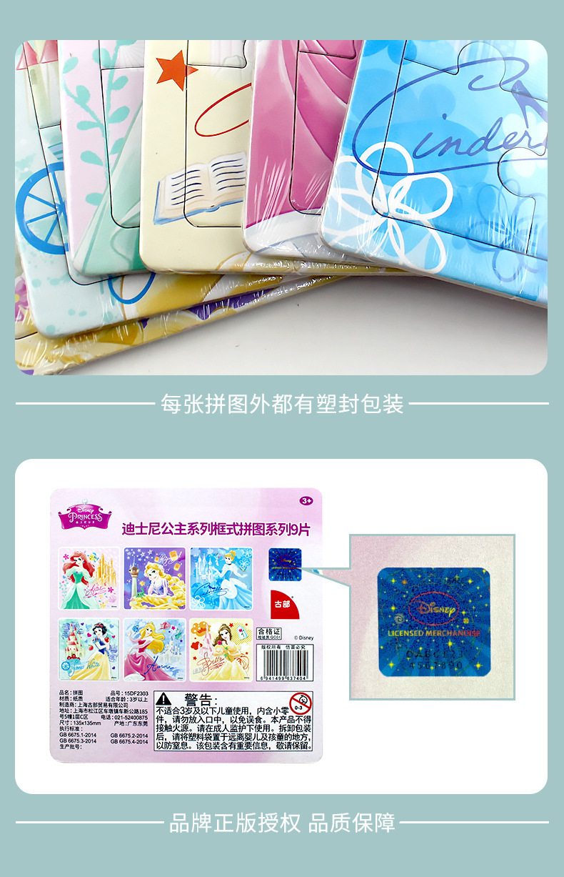 ディズニーお姫様60枚紙箱パズル3-6-8歳の子供のワンワンチームの益智のつづり5歳の早教玩具