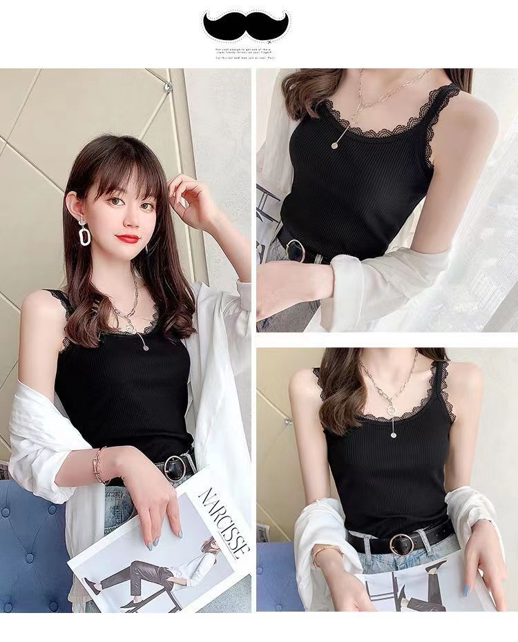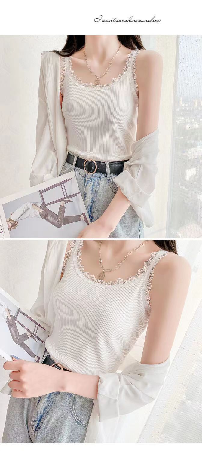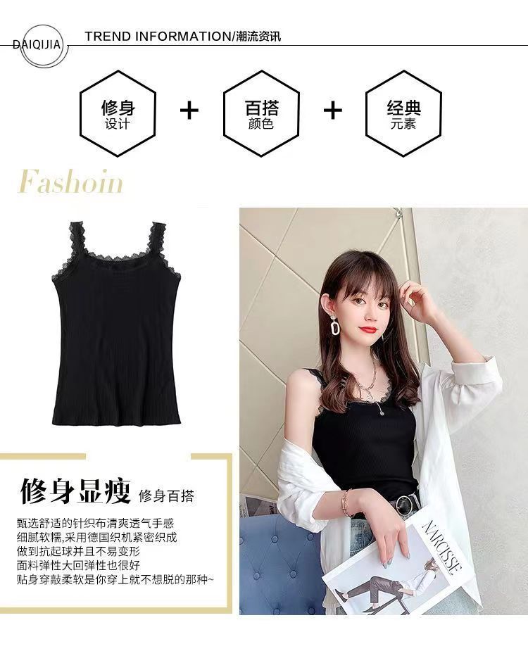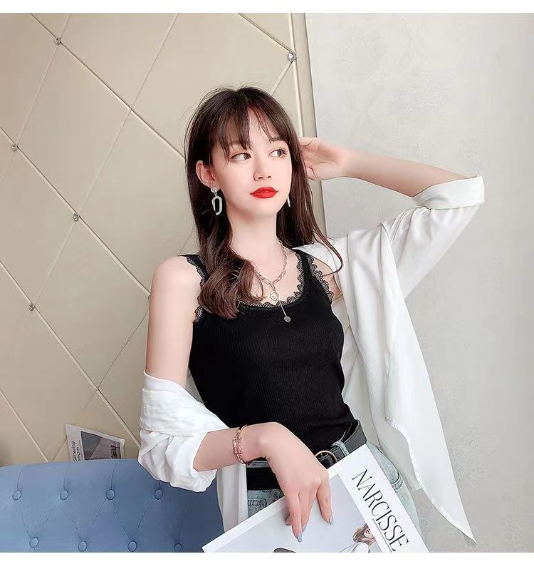 モーダル夏ニットスリングベスト女性レースの縁の大きいサイズの修身外着のインナーシャツのベスト
