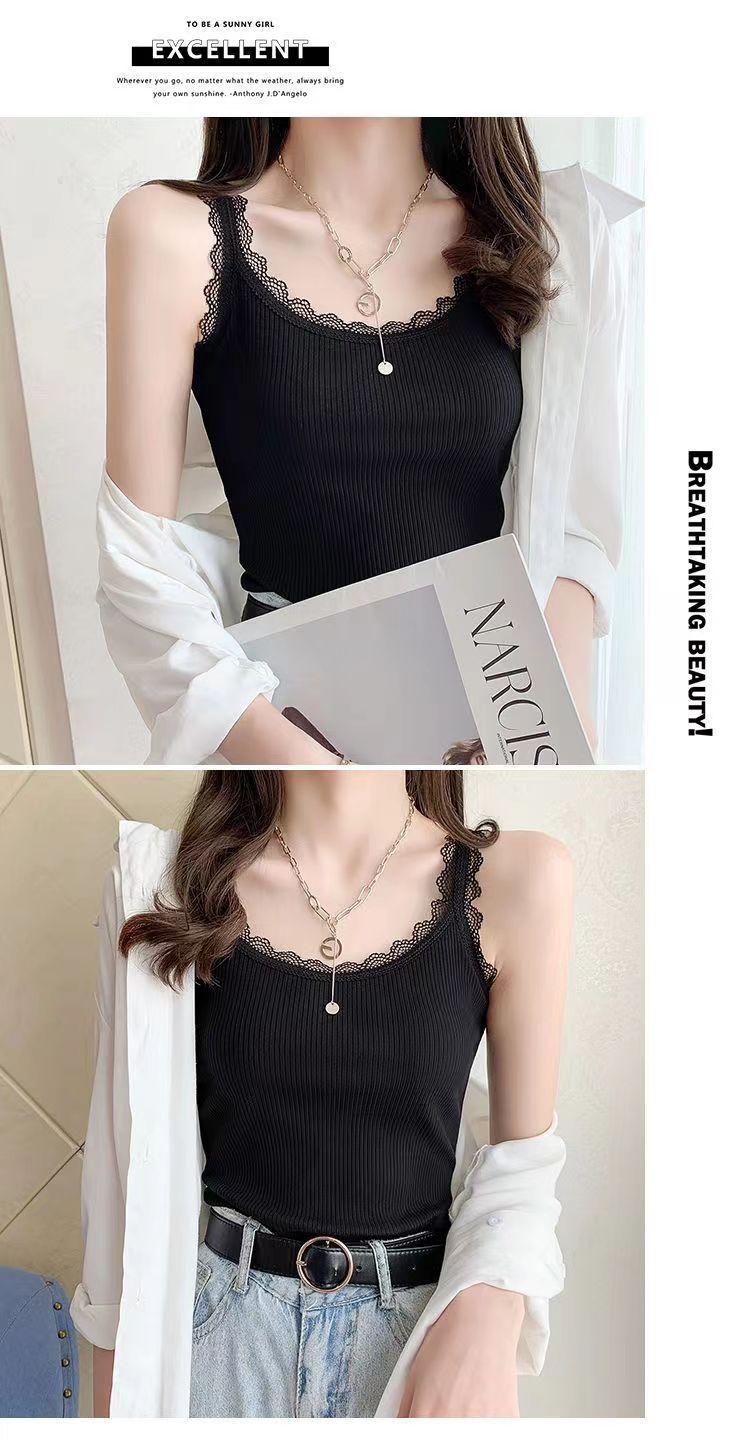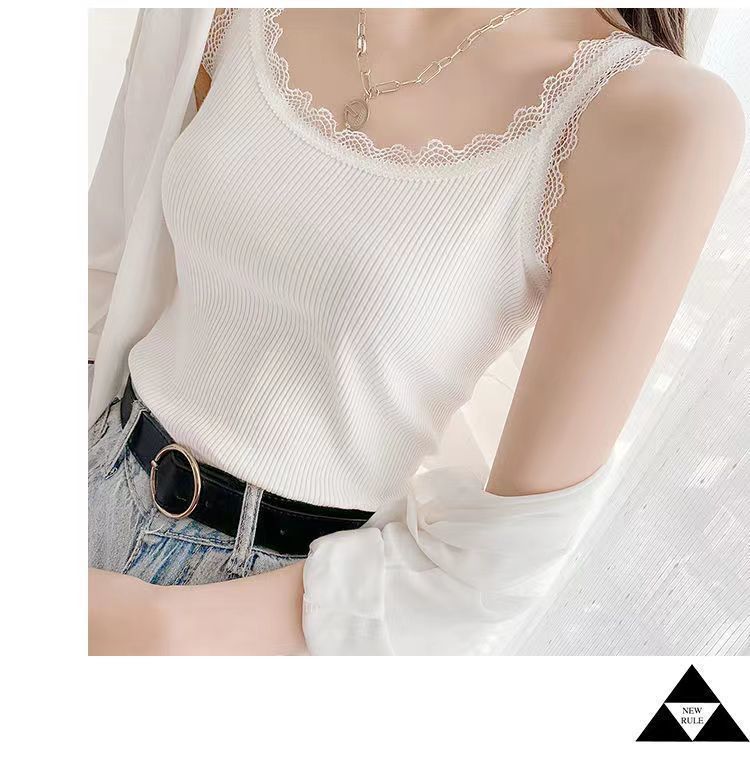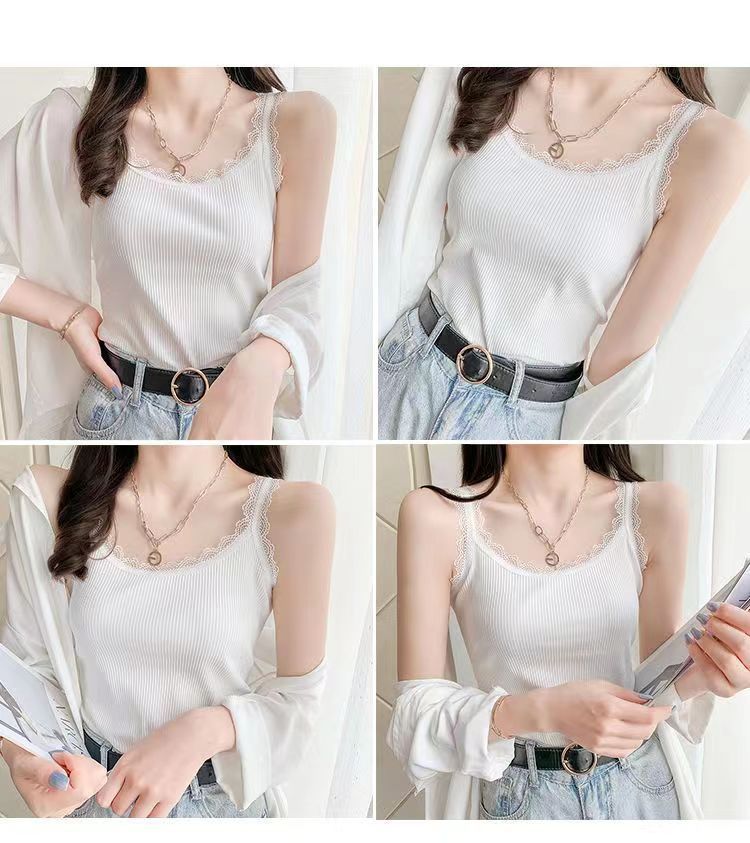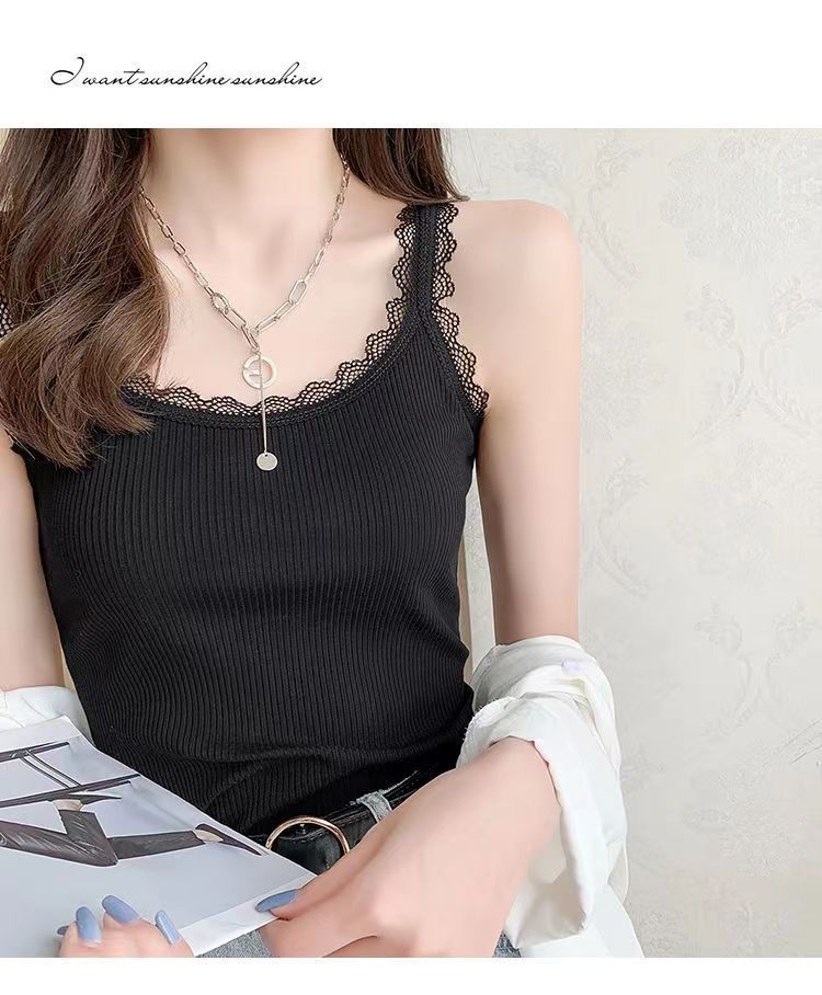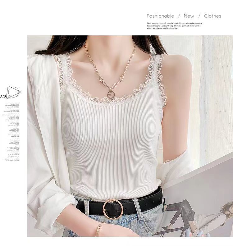 モーダル夏ニットスリングベスト女性レースの縁の大きいサイズの修身外着のインナーシャツのベスト