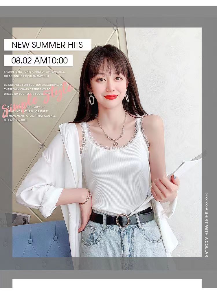 2024夏の新商品のレースはねじのモーダルキャミソールの女性の中に身を修める上着の底のシャツをつなぎ合わせます。