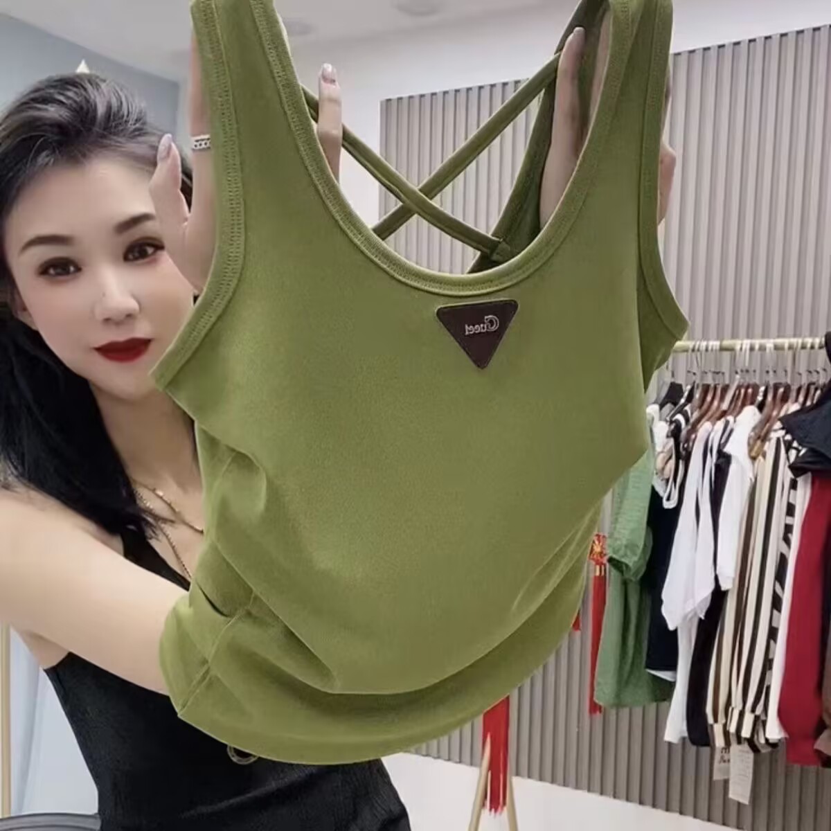 小さいサスペンダーのベストの女性の夏の薄いタイプの中は外で身を修めることができます。