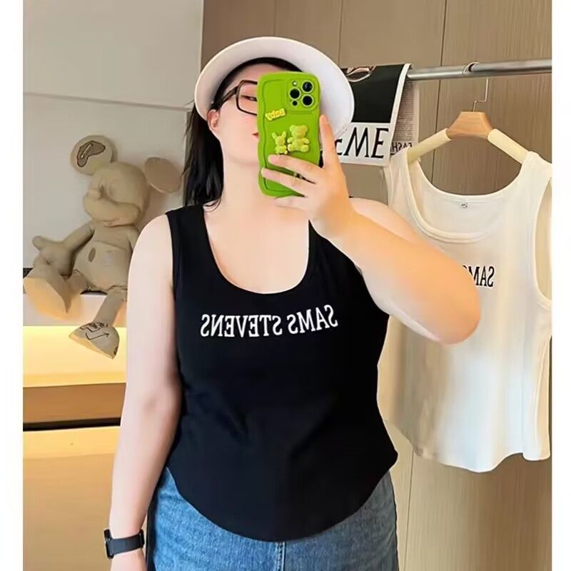 プラスサイズの女性の 2025 夏の新しい韓国スタイルファット mm シンプルなレタープリント多用途ワイドショルダーストラップキャミソール女性