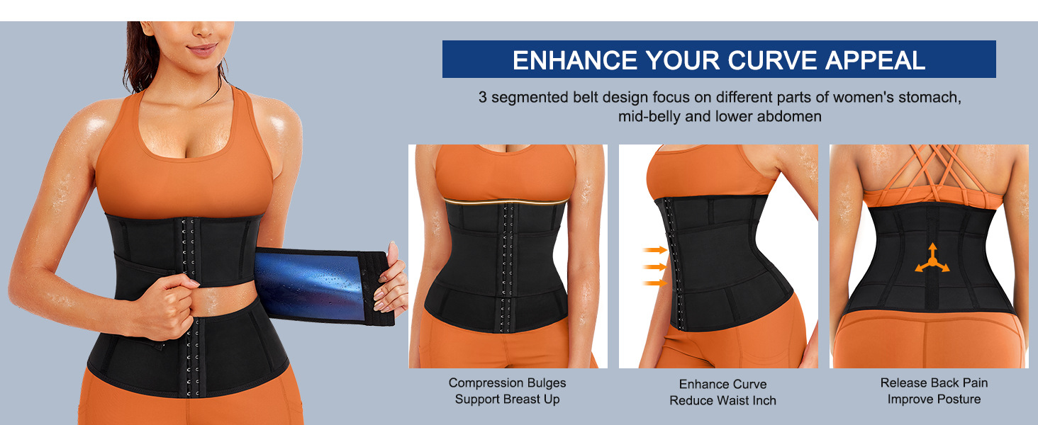 国境を越えた欧米の三段式の腹巻きは加圧ベルトを締めて小腹を収めます。