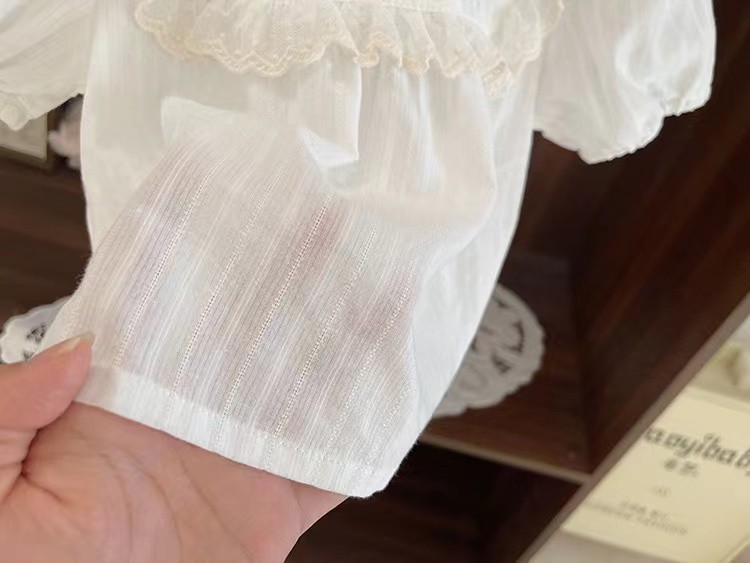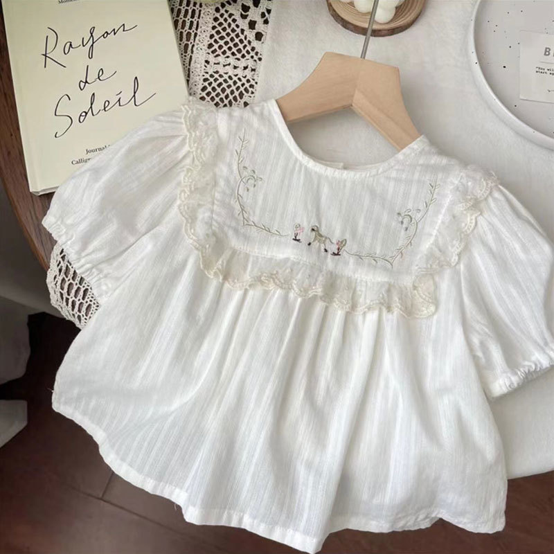 夏の女の子の子供服のシャツの赤ちゃんの子供の個性のファッションブランドの韓国版のレースの刺繍の漫画の白い子供のシャツ