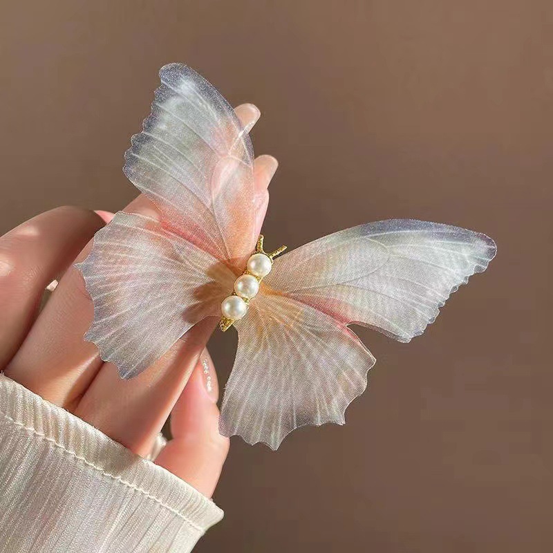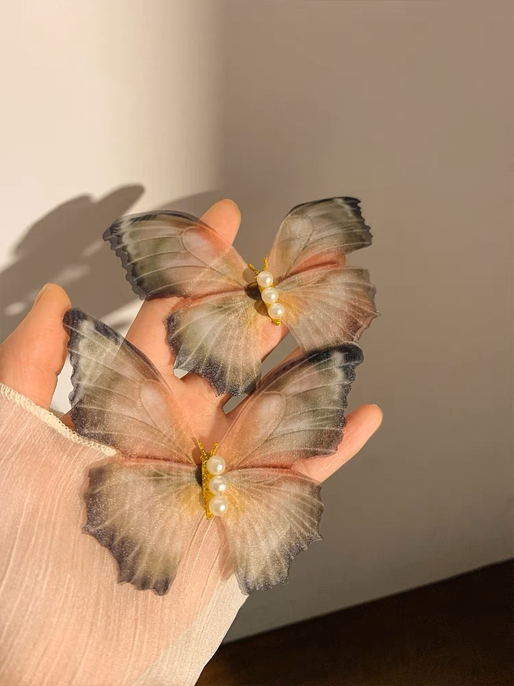 仙気霊動網紗蝶ヘアクリップ女性写真高級感真珠サイドクリップヘアピン古風気質髪飾り