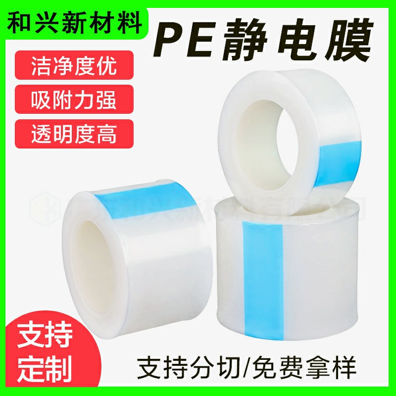 深セン耐高温透明ゴムなし静電自己接着pe保護膜光学ガラスプラスチックケース防塵pe静電膜
