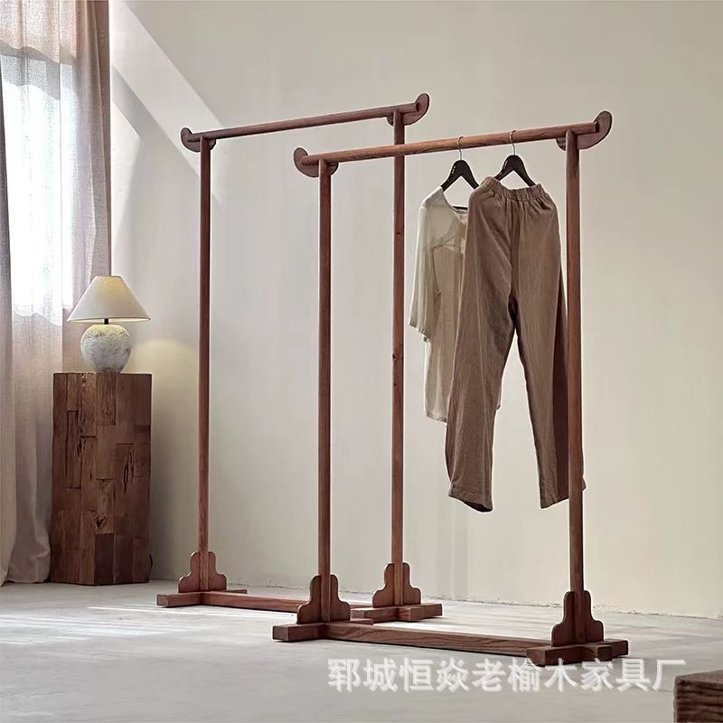 古いニレ無垢材の床から天井までの洋服ラック新しい中国風のクリエイティブなシングルロッド洋服ラックホームベッドルームコート収納ラック